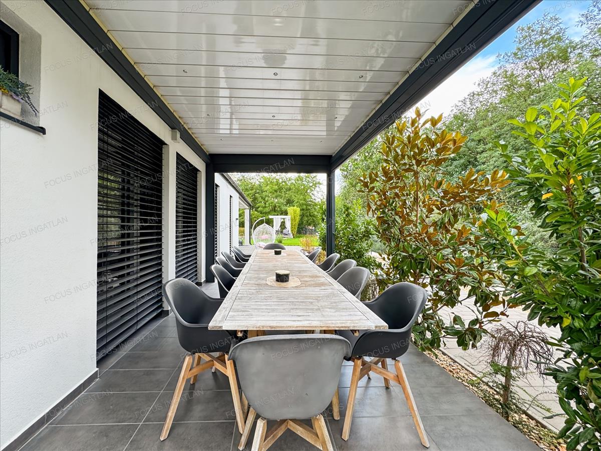 Terasz: a teraszon egy 15 m²-es, motoros vezérlésű bioklimatikus pergola teszi lehetővé a kinti pihenést bármilyen időjárásban.