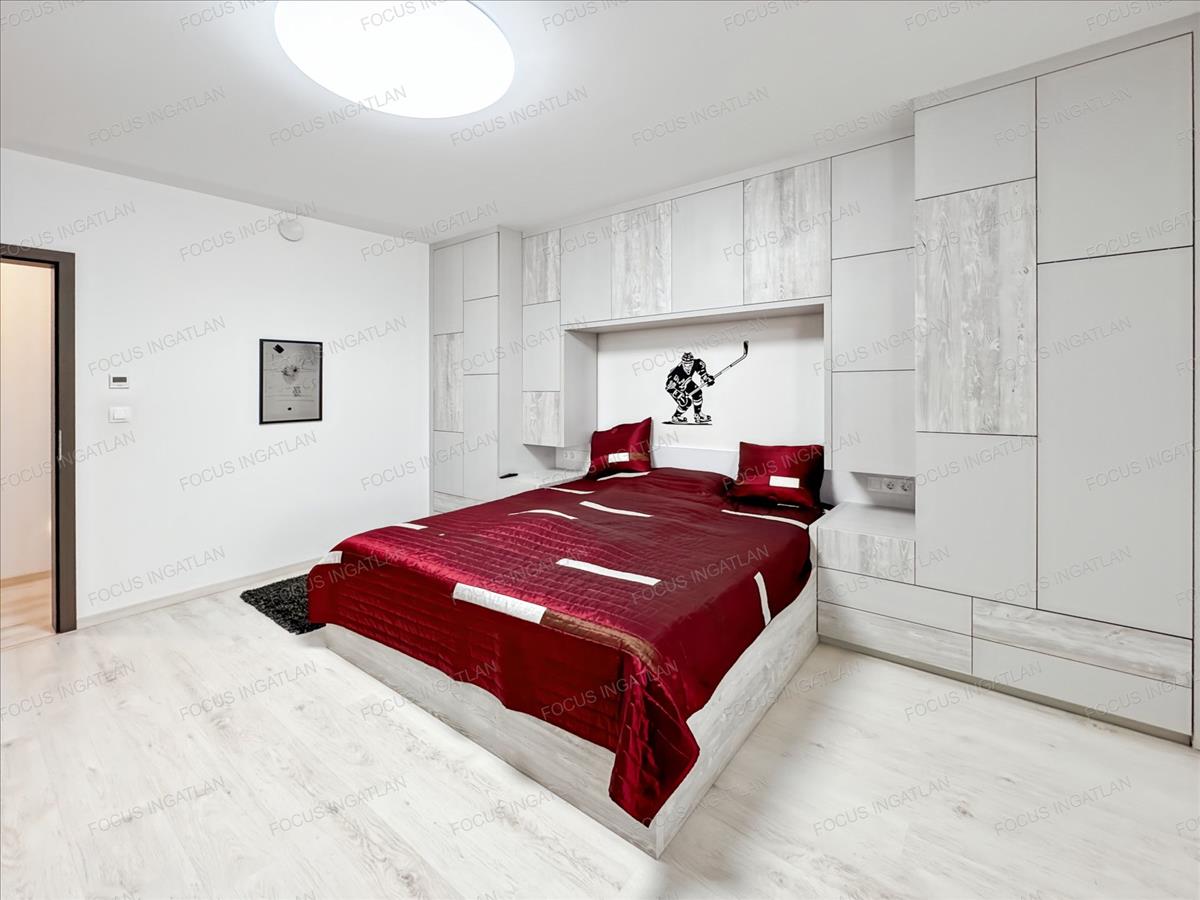 Emelet: a privát szféra, ahol további kényelmes hálószobák és egy luxus színvonalú fürdőszoba kapott helyet.