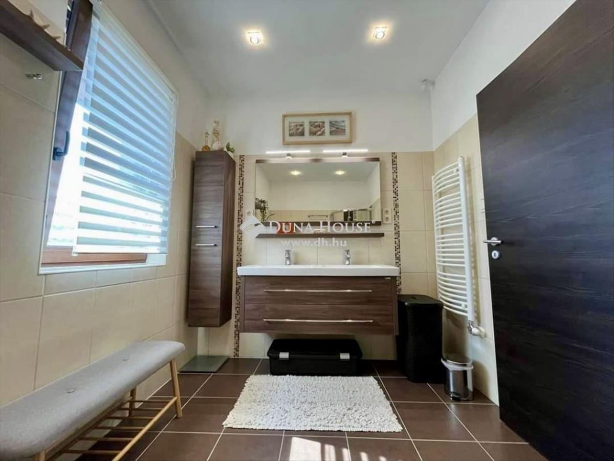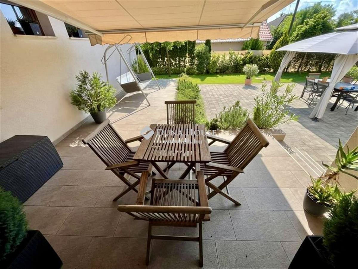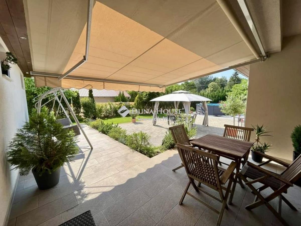 Kecskemét egyik legkedveltebb városrészében, közvetlen betonút mellett, 2016-ban épült, 145 m2 hasznos alapterületű, nappali + 3 szobás +gardrób + háztartási helyiség elosztású, egyszintes családi ház, dupla garázzsal, terasszal, térkövezett és gyönyörűen parkosított 1. 439 m2 területtel! Az udvaron gyönyörű pázsit, ciprusok, a gyerekek részére faház, mászófallal, játszótérrel és 16 m2-es kerti tárolóval.