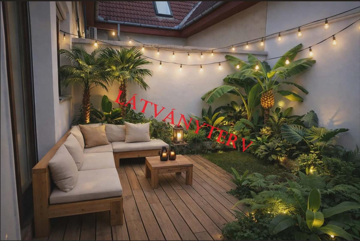 A nappaliból közvetlen kapcsolat nyílik egy privát, átriumos udvarhoz, melynek hasznosításában rengeteg lehetőség rejlik. ( Pl. Japán kert, grill terasz, stb).