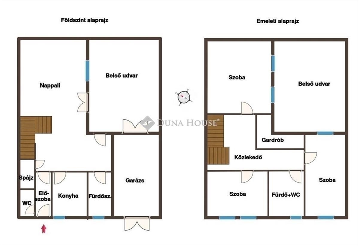 Az ingatlanban mindkét szinten padlófűtés biztosítja az egyenletes hőmérsékletet, míg a nyári melegben az emeleten klíma