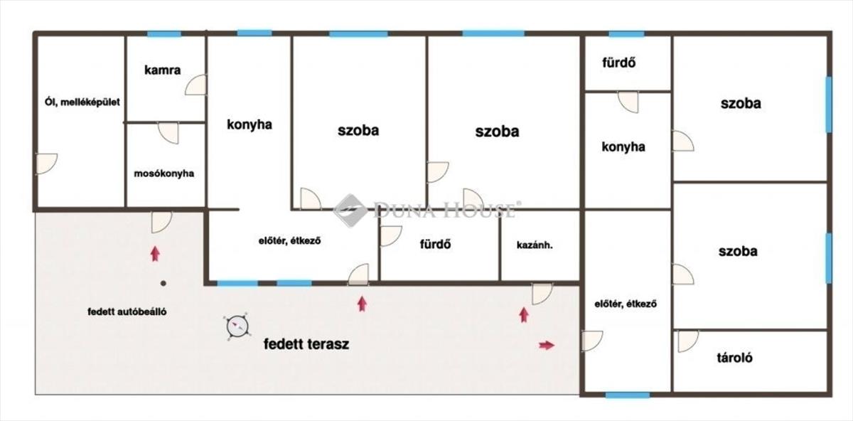 A két külön bejáratú lakóegység 74 és 51 nm , így ideális összeköltözőknek vagy befektetésnek is. Az ingatlanhoz tartozik egy 50 nm -es fedett terasz, amely akár két autó parkolására is alkalmas.