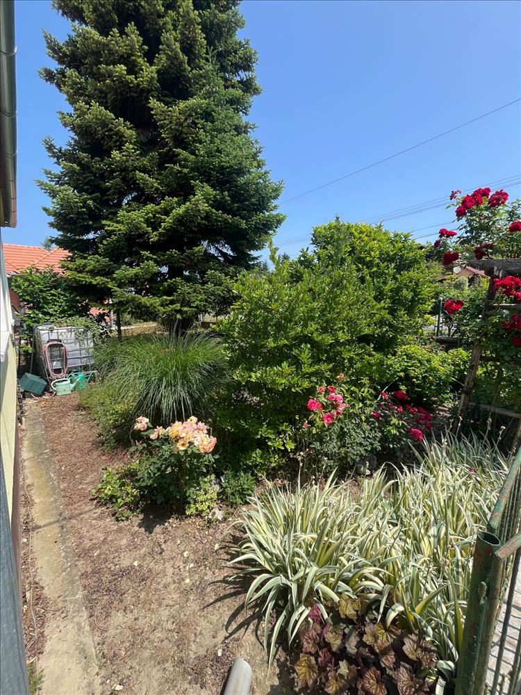 A kertben gyümölcsfák, ágyások, saját kúttal rendelkezik.