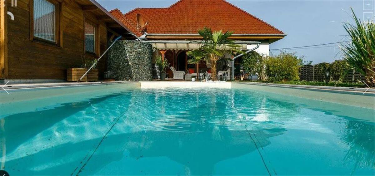 A beautiful family home is now for sale in Kehidakustány. The property is located on one of the town's quiet, traffic-free streets. This beautiful home is set on a 900 m² plot of carefully maintained land. The front and back gardens are perfect for relaxing, with a covered terrace, swimming pool and private wellness area offering the ideal setting for unwinding or entertaining friends and family. The property is bathed in natural light thanks to its huge arched windows. The building was constructed in 1997 from brick and, following a major renovation, achieved its current charming character in 2020. The roof is covered with ceramic tiles, and the garage is located on the street front. Entering through the main entrance, we reach the bedrooms on the lower level, the beautiful kitchen, the dining room, and a bathroom with a shower, turning right from the large entrance hall. The lower level also features a lavish living room with a tiled stove. From here, we can access the comfortable covered back terrace, which is just a step away from the pool and family-sized jacuzzi, where we can relax at the end of the day. Here, we can sit in the sauna and relax a little, completely undisturbed. The property is air-conditioned, and in cooler weather, a gas boiler with radiators and even the tiled stove help to maintain a pleasant temperature. During the renovation, the property's electricity supply was upgraded. Everything you need for everyday life is just a few minutes' walk from the street. The town has a shop, pharmacy, school, kindergarten, and almost everything else you could need. The spa is only 1, 100 meters away. The Zala Springs Golf Resort is 2. 5 Kilometers away. Hévíz is a 15-20 minute drive away. There are plenty of opportunities for excursions. I would recommend this beautiful home to families looking for peace and quiet, as well as an excellent investment opportunity.