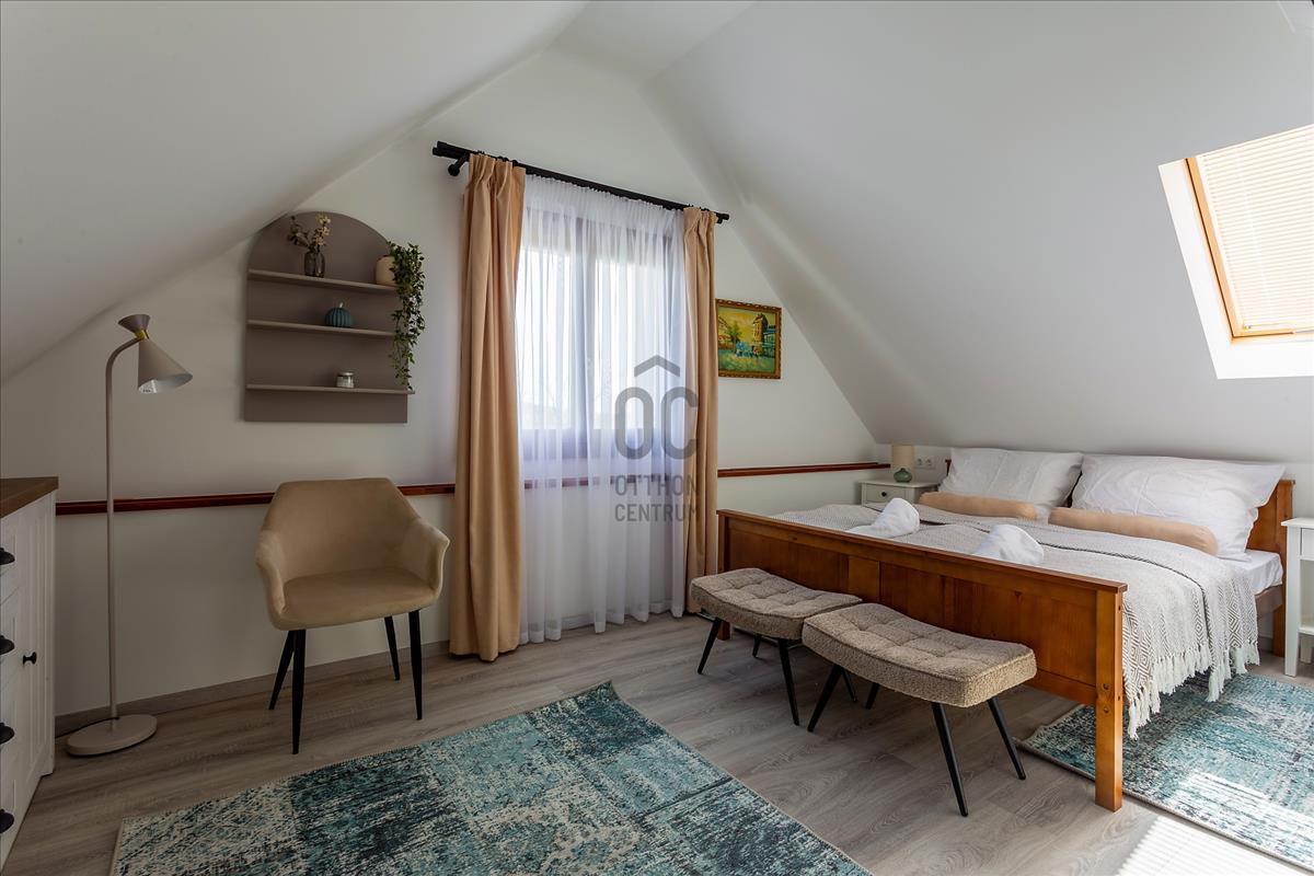 A 221 m²-es, kétszintes, teljes körűen felújított lakóház besorolású ingatlan a Balatontól mindössze pár percre található, 1460 m²-es parkosított telken!