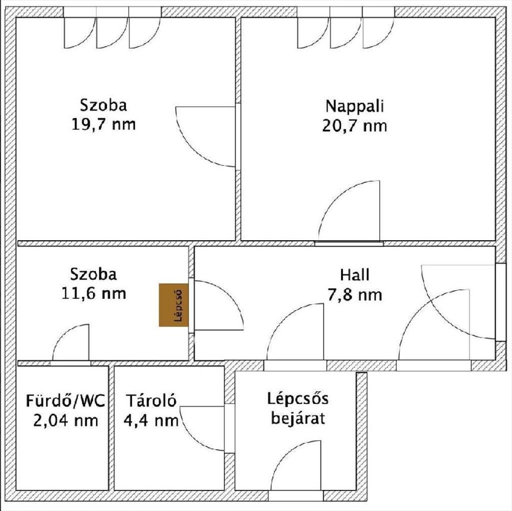 A zárt lépcsős bejáraton át egy világos, tágas hallba érkezünk, amely igény szerint konyhává alakítható. Innen nyílik egy szoba és fürdőszoba, valamint továbbhaladva a tágas nappali, ahonnan egy nagy hálószoba nyílik. a közel 3 méteres belmagasság tágas érzetet biztosít. a fűtés gázkazánnal megoldott, a burkolatok felújítást igényelnek.