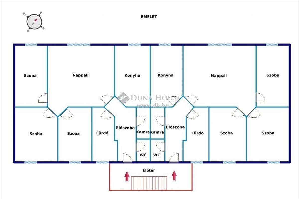 Az emeleten két darab, bruttó 106 m2-es, nappali plusz 3 szoba nappalis lakás. Az épület kiváló műszaki állapotban van, a melegről gáz cirkós fűtés gondoskodik.