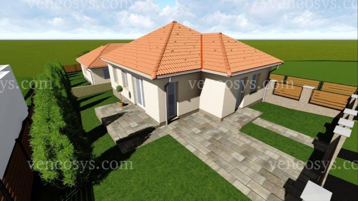 Megvételre kínálok a Panoráma Lakóparkban egy hőszivattyús, egyszintes, 88 nm-es, nappali + 3 hálószobás, új építésű, osztott telken épült körbejárható családi házat, nincs közös falfelület, a 320 nm-es telekrész kerítéssel különválasztva.