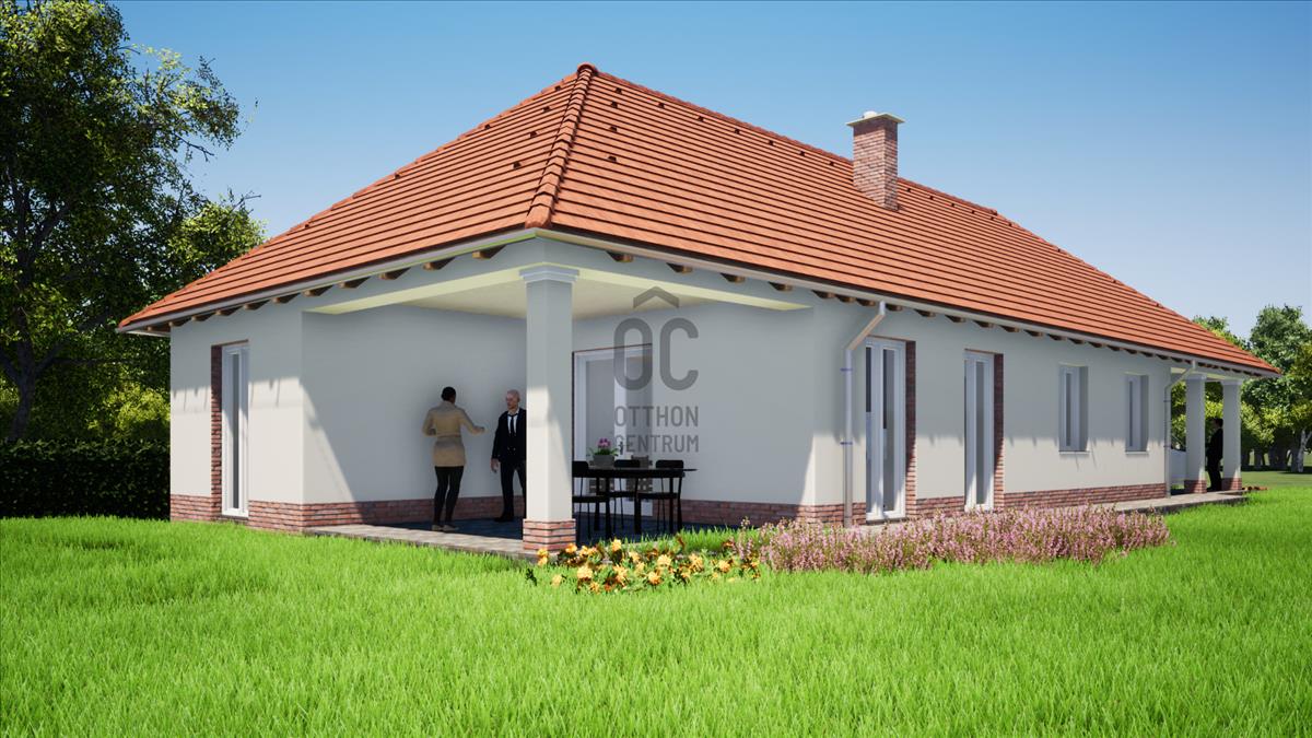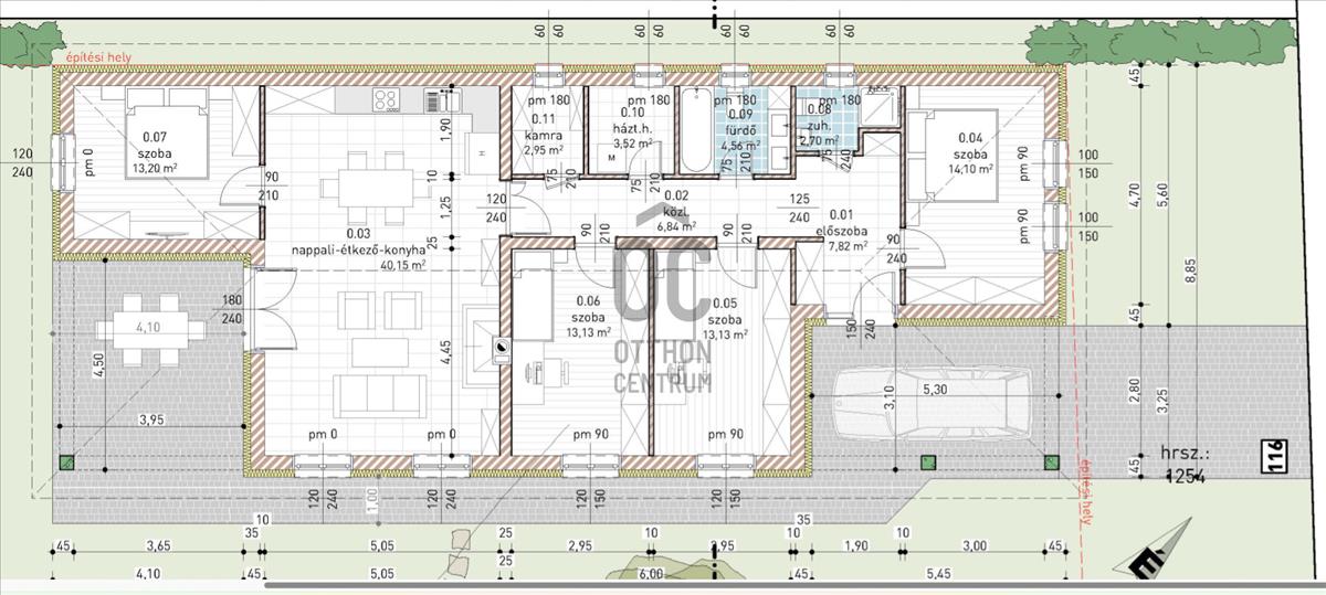 Elosztása: Amerikai konyhás nappali és 4 hálószoba, 2 fürdőszoba, kamra, háztartási helység, közlekedő, előszoba.