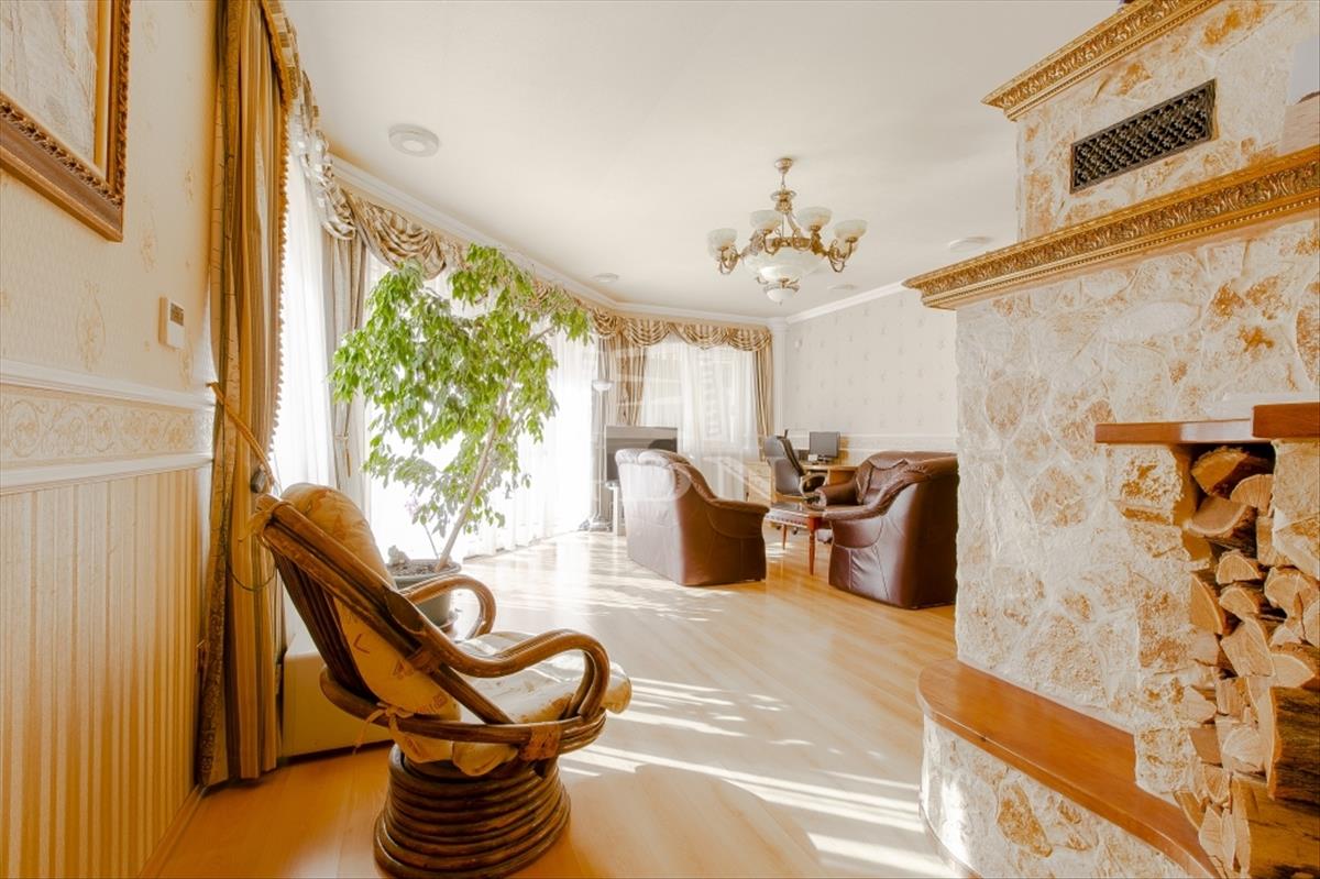 földszinten pedig előszoba vendég mosdóval, hatalmas étkezős felszerelt konyha, illetve kandallós nappali és dolgozószoba biztosít életteret a mindennapokra.