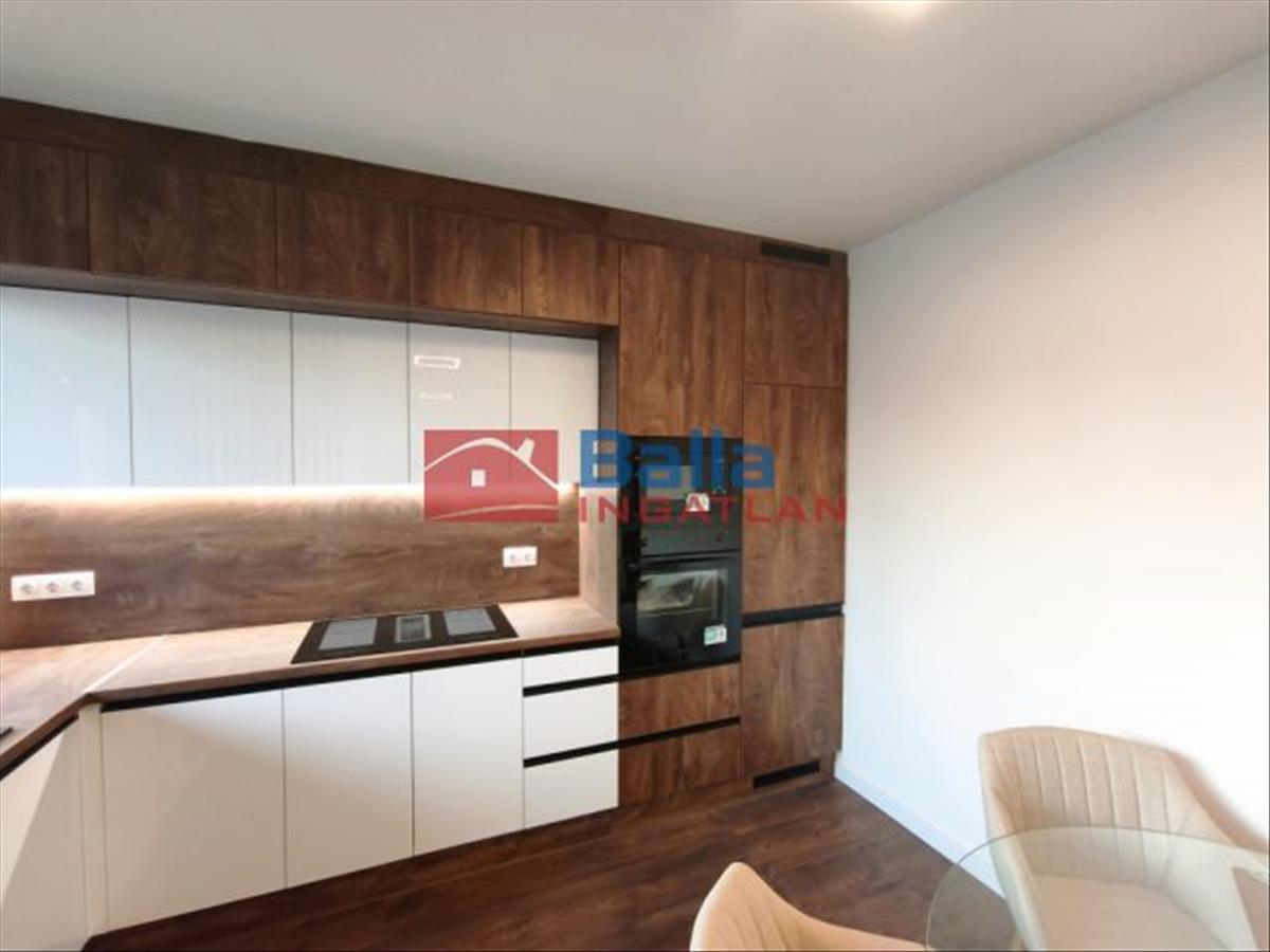 A földszint központi tere egy tágas, világos nappali amerikai konyhával, amely közvetlen kapcsolatban áll a 13 m²-es terasszal, így ideális helyszíne lehet családi és baráti összejöveteleknek. Ezen a szinten egy hálószoba, egy gardróbhelyiség, egy zuhanyzós fürdőszoba dupla mosdóval, valamint egy külön mellékhelyiség kapott helyet. a modern konyha teljesen új, beépített bútorral és gépekkel felszerelt – hűtőszekrénnyel, sütővel, mikróval, mosogatógéppel és főzőlappal elszívóval –, melyek a vételár részét képezik.