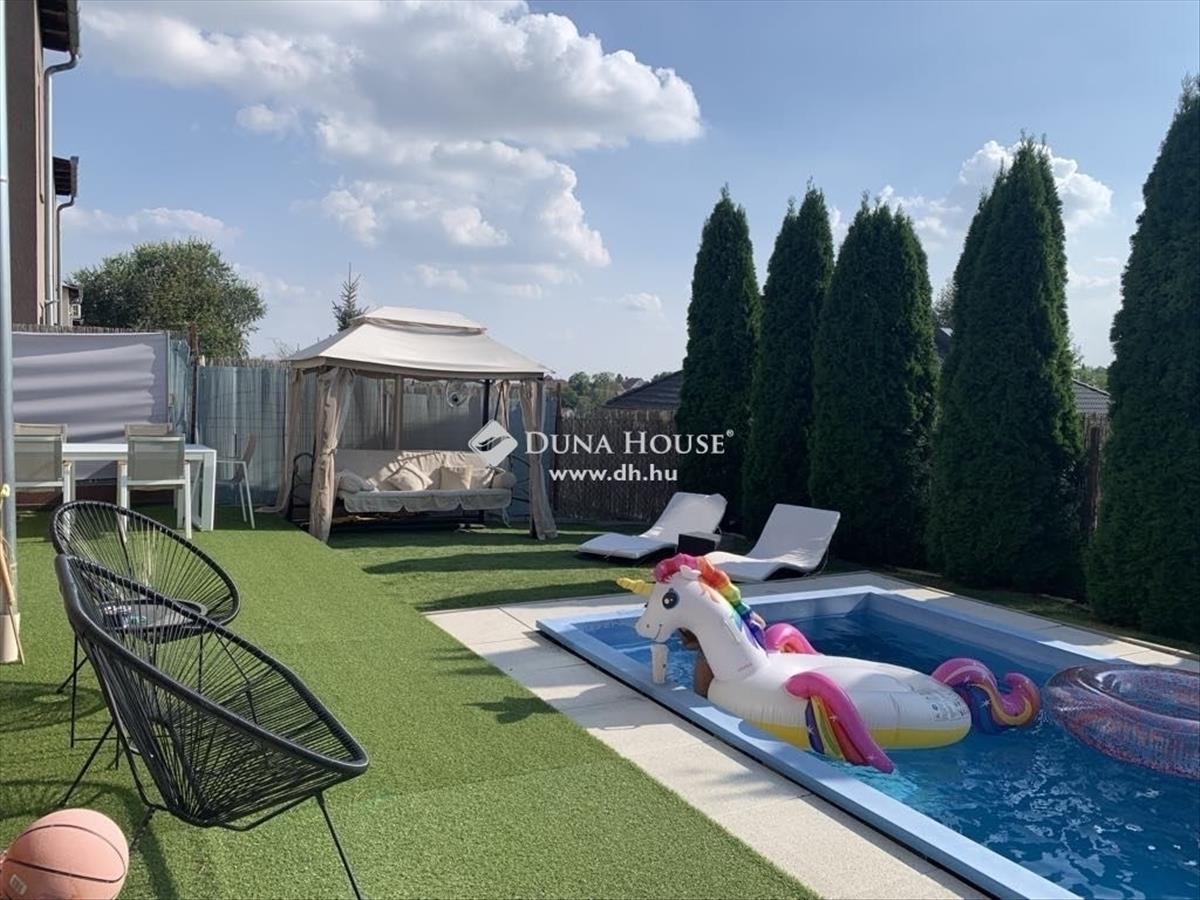 ÁÁlom Otthon Szilasligeten! Megvételre kínálok egy 178nm es kétszintes+80nm es tetőtér+20nm es garázsos, fedett kocsibeállós, medencés házat. Az alsó szinten található at 52 nm. Es tágas nappali, amerikai konyhával, étkezővel, spejzzel. Innen nyílik a műfűvel borított medencés kert terasszal. Az alsó szinten található még egy walk-in zuhanyzós fürdő wc. -Vel és egy nagyméretű(19nm. Es)mosókonyha. a nappali hangulatáról a rejtett világítások+a Led gondoskodik. Délnyugati tájolása miatt egész nap fényárban úszik. Minden ajtó és ablak redőnnyel, szúnyoghálóval felszerelt. a felső szinten két tágas hálószoba (19nm+21nm)és egy vendégszoba került kialakításra. a kényelmet szolgálja még a nagyméretű kádas, wc. -Vel ellátott fürdőszoba, valamint egy gardróbszoba is. a lépcsőházban tovább haladva egy betonfödémes 80nm. Es tetőtérre jutunk, mely igény szerint tovább alakítható. Az ingatlanhoz tartozik még egy fűtött garázs és egy fedett kocsibeálló. a ház fűtéséről az Ariszton gázkazán és a padlófűtés gondoskodik. Hőmérséklet szintenként állítható. a szülői hálóban hűtő-fűtő klíma berendezés van. Igényes burkolatok, modern design jellemzi. a környék infrastruktúrája kiváló. Buszmegálló, hévmegálló, bevásárlási lehetőség pár perc sétatávolságra van. Kirándulni közeli erdőben, természetvédelmi területen lehet, melyre rálátunk az ablakokból. Tehermentes. Megtekinthető rugalmasan, előre egyeztetett időpontban.