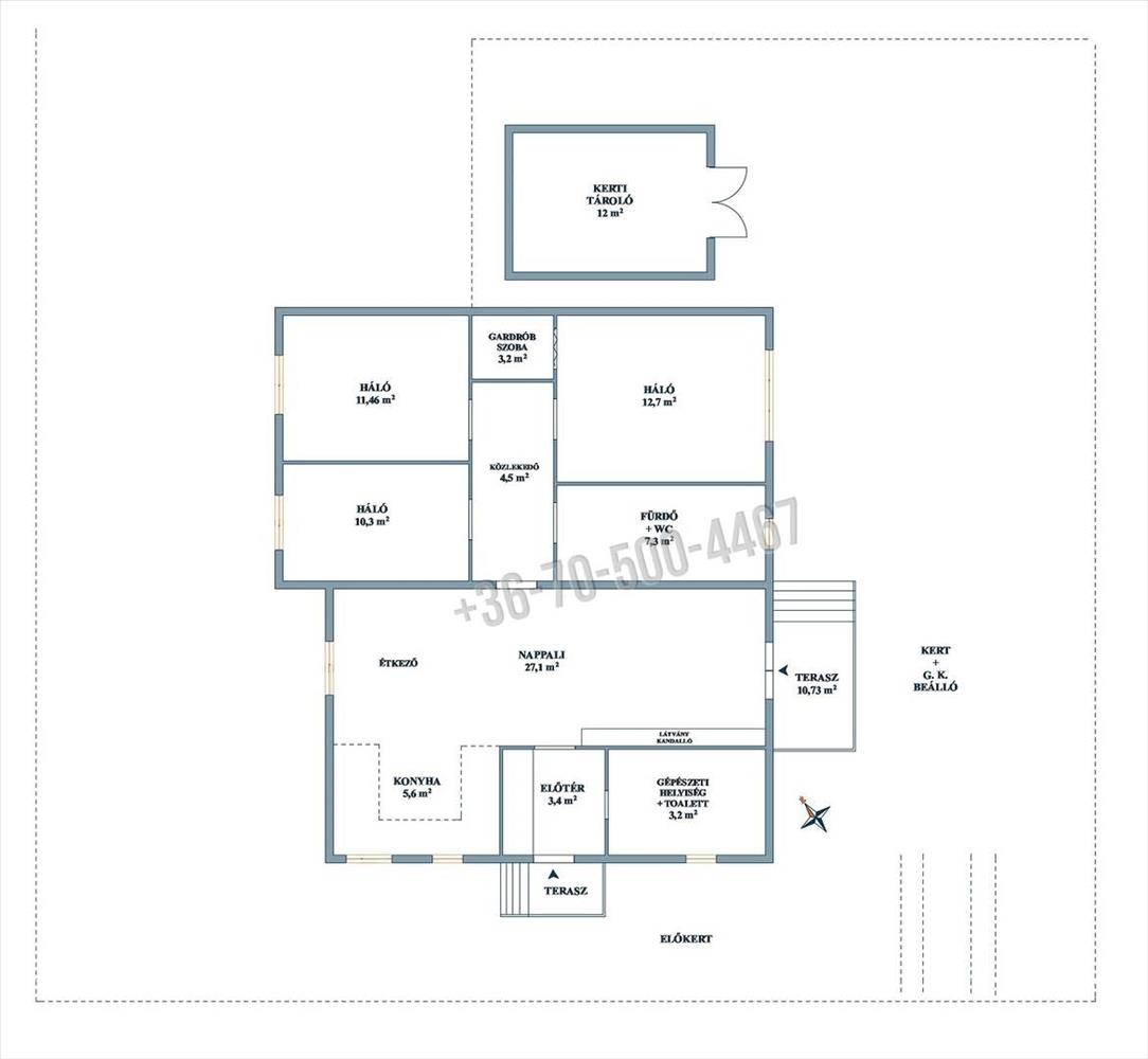 A kert végében egy 12 nm-es, könnyűszerkezetes tároló is helyet kapott.