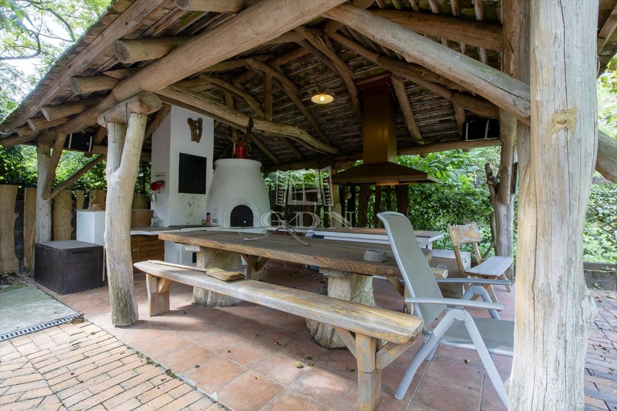 Ingatlan környezete tiszta rendezett, növények gondozásáért öntöző rendszer felel. a telek végében található még egy mini tanyavilág, kerti kiüllővel, sütögetővel, kemencével, tárolókkal, mögötte pedig a Szilas patak csörgedezik, melyhez saját lejáron keresztül juthatunk le.