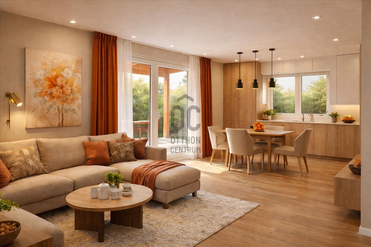 -amerikai konyhás nappali + 2 szobás