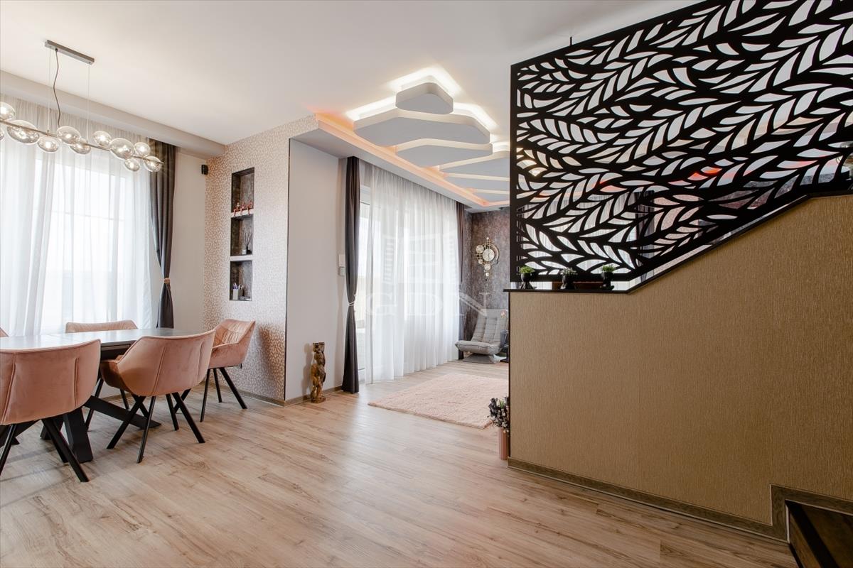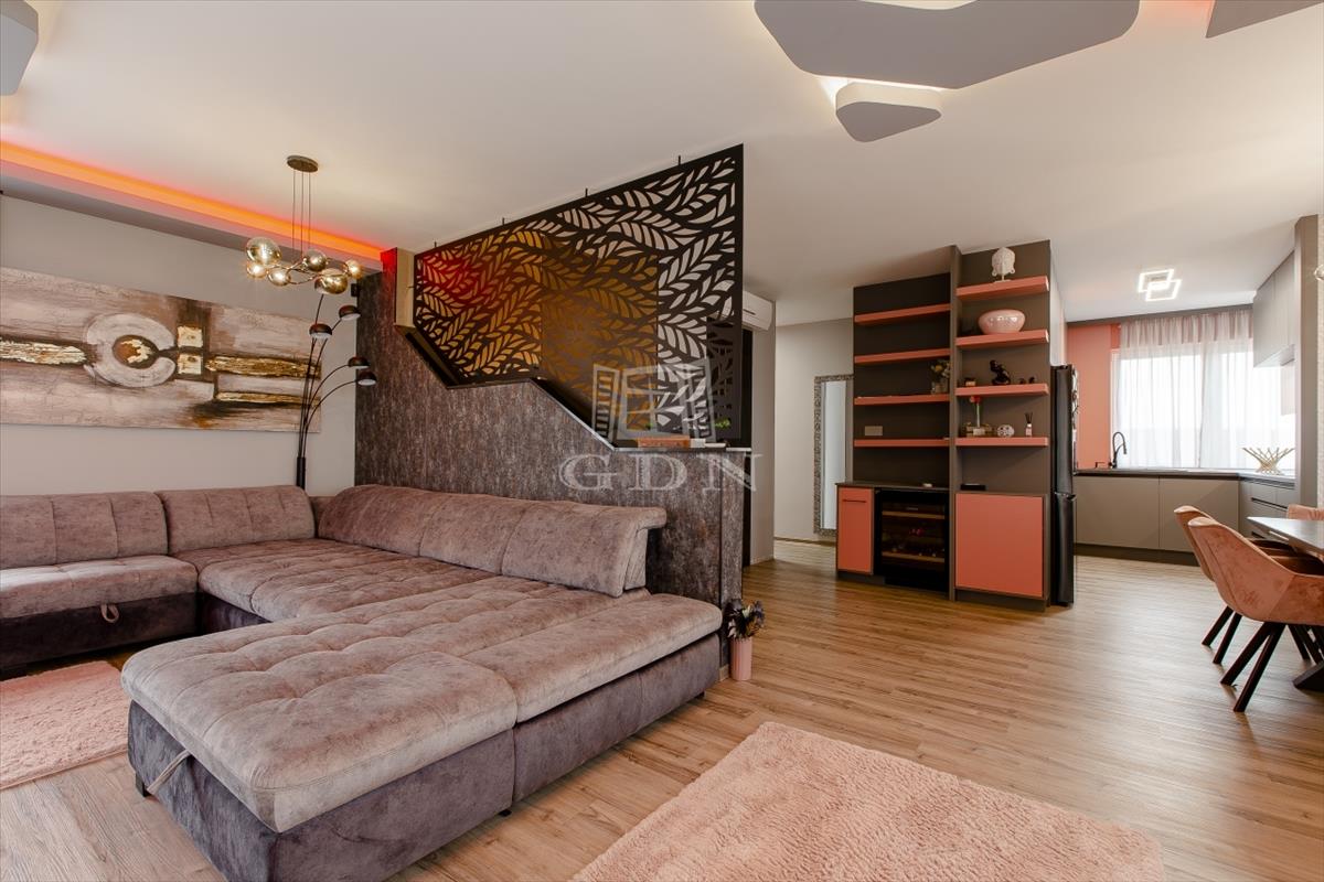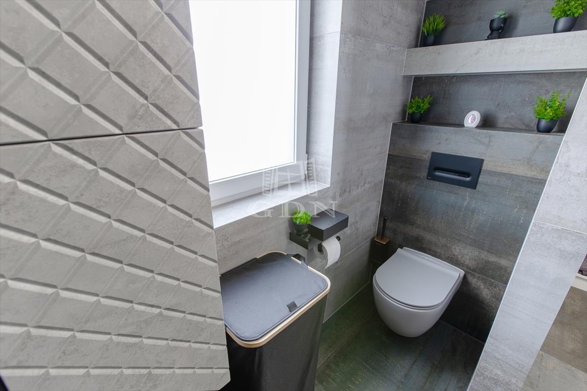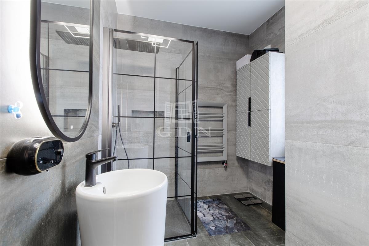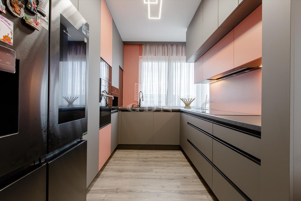 A tágas, világos nappali berendezve várja új tulajdonosát, a fürdőszobákban pedig felső kategóriás, bronz és rosegold színekben pompázó tres csaptelepek és zuhanyok, valamint érintésmentes szappanadagolók és szemetesek szolgálják a kényelmet.