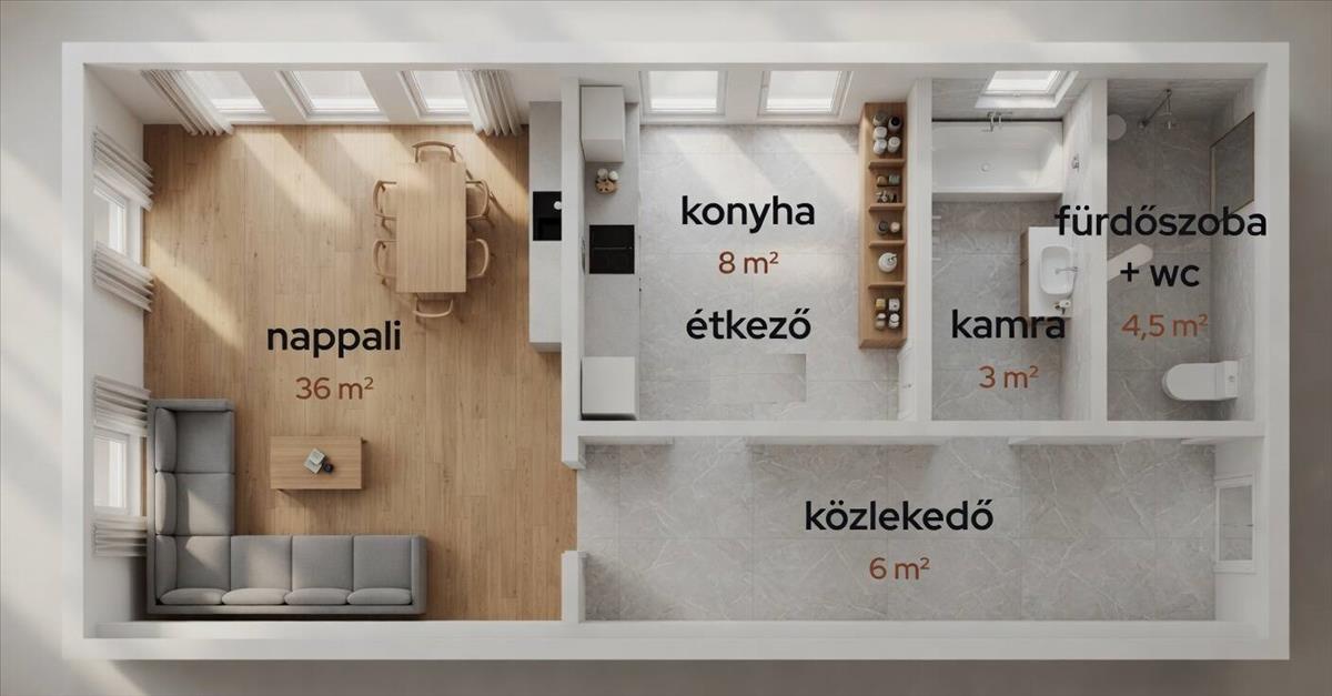 • Tágas, jól átgondolt terek, ahol minden családtagnak jut hely