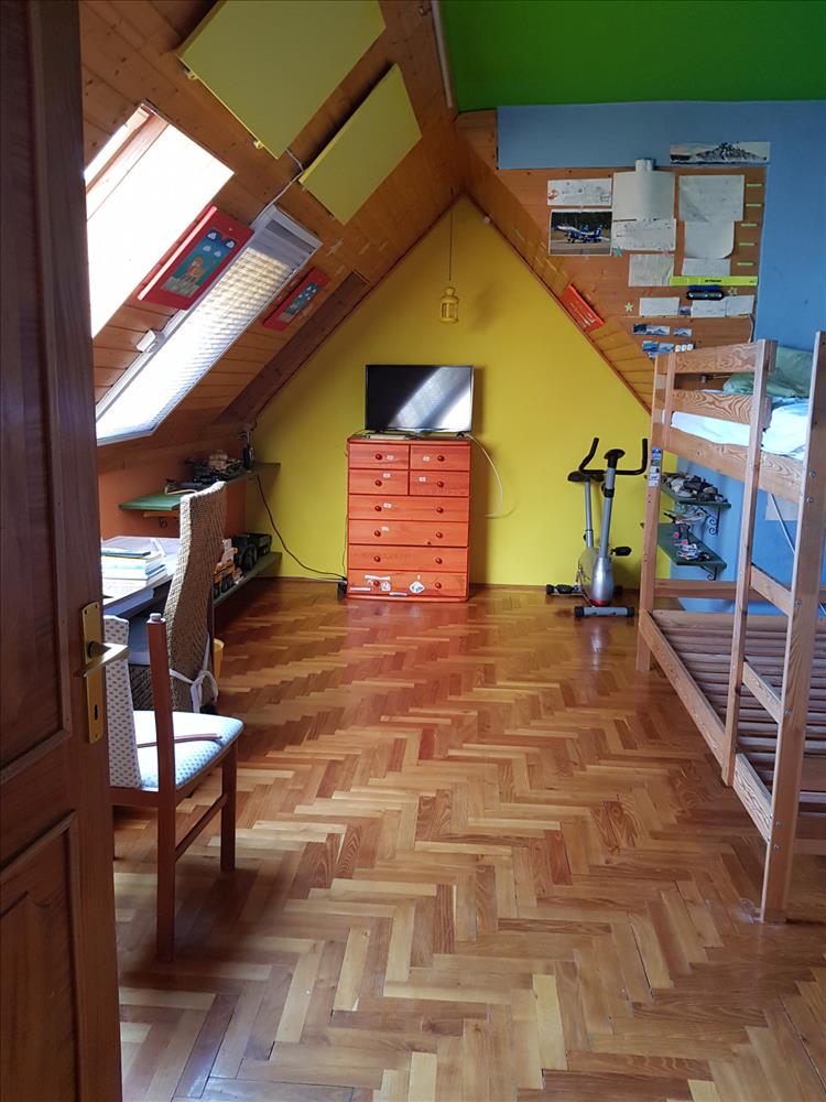A tetőtérben 2 szoba van, a plusz nappali galériás, fürdő, külön wc, konyha, spájz van.