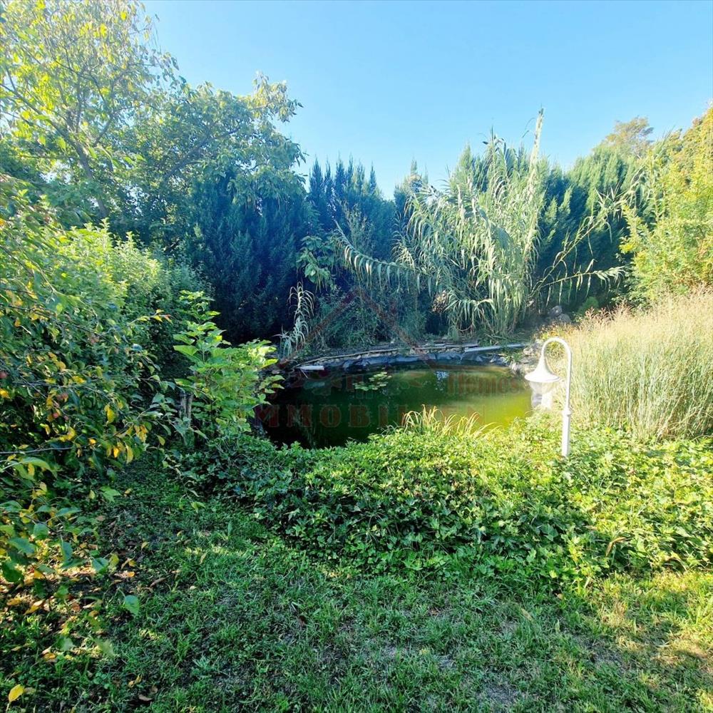 Az egész ház körüli kert szépen parkosított, gondozott, körbekerített, több termő gyümölcsfa is megtalálható illetve egy kis halastó is.