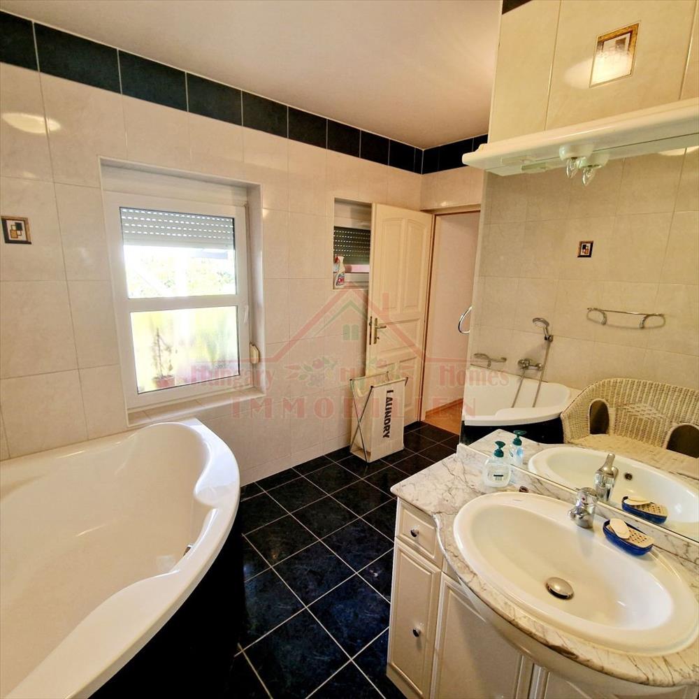 Mittlere Ebene: Am Haupteingang gibt es eine Terrasse und einen Vorraum, ein Büro, ein separates Gäste-WC, in einem Raum finden wir das Wohnzimmer + Esszimmer + Küche, von hier aus gibt es eine große Terrasse, außerdem 4 Schlafzimmer durch eine Ebenenverschiebung gelöst, verfügt es über 2 separate Garderobenräume, ein Badezimmer mit Badewanne + wc.