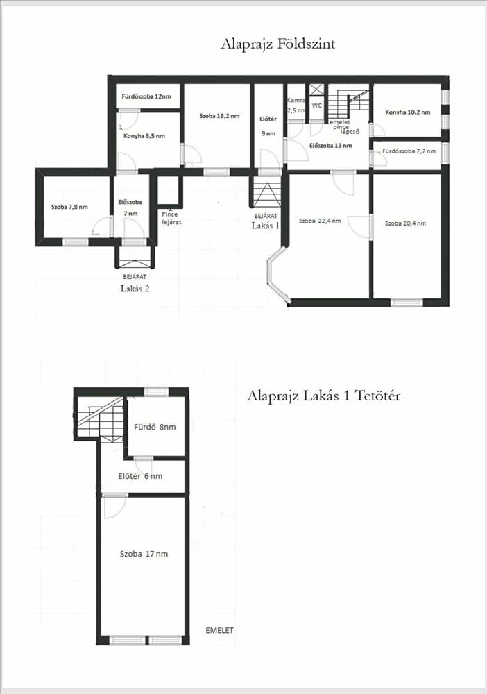 -1, 5 szoba, konyha, fürdő+WC, mellette pince