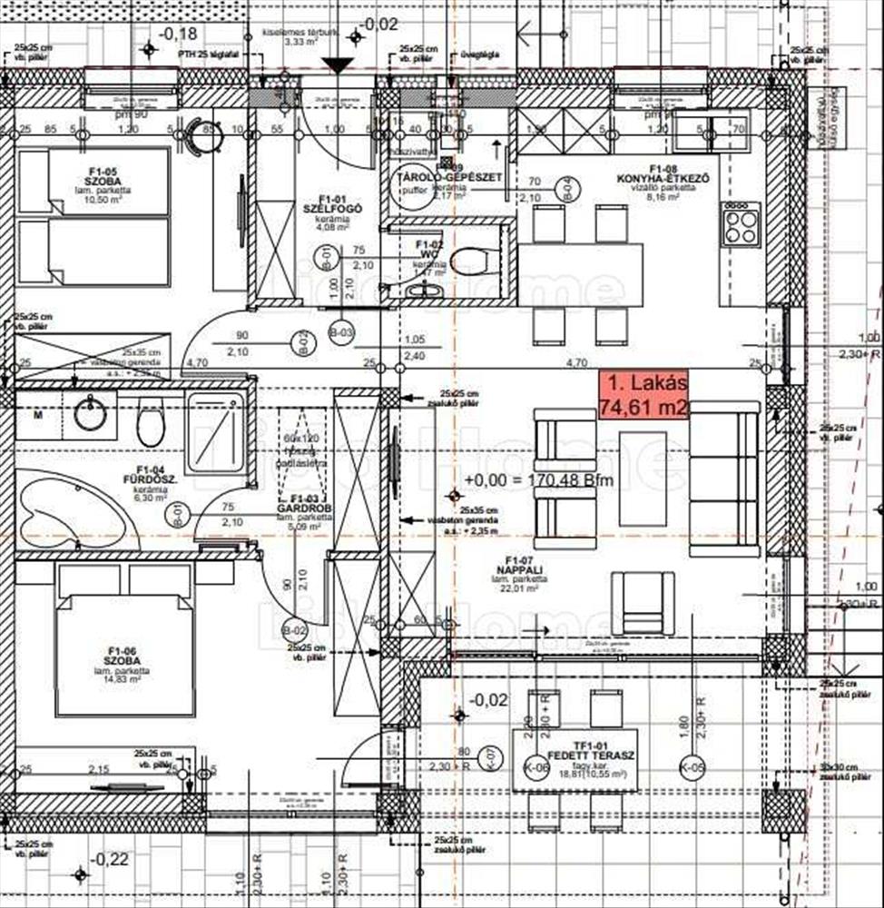 - alapterület: 75 nm + 10 nm terasz, kizárólagos használatú telekrész kb. 500 Nm