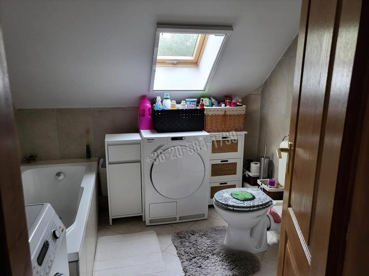 Közlekedő, fürdő+wc, étkező, konyha, nappali az emeleten 2 szoba és egy fürdő+wc került kialakításra.