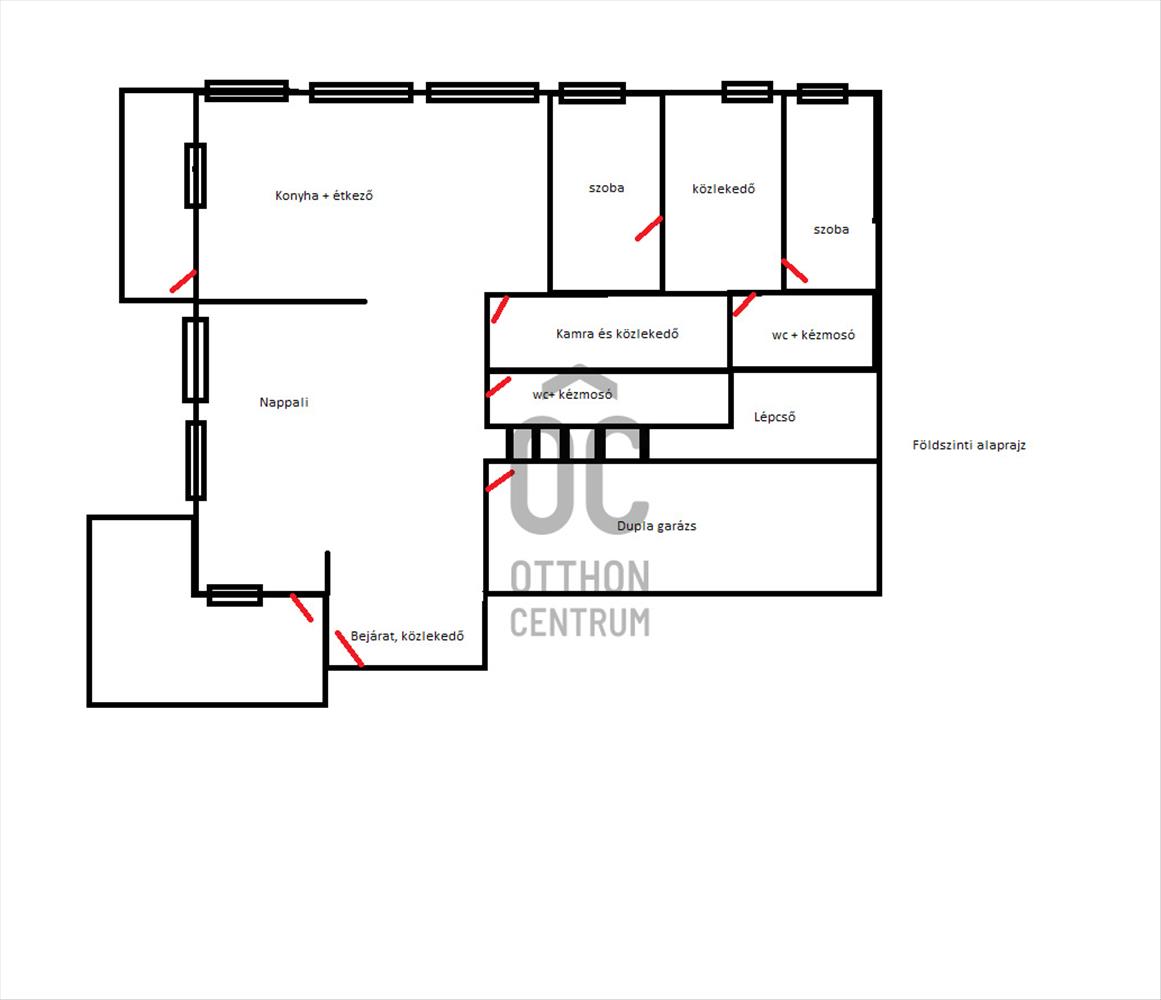 - Alsó szinten: dupla garázs, wc kézmosóval, tágas nappali, konyha-étkező, kamra található.