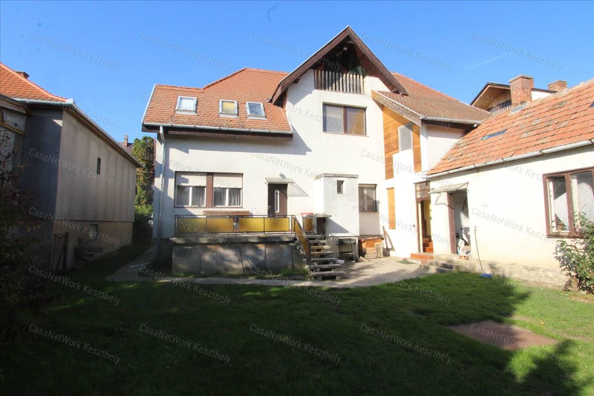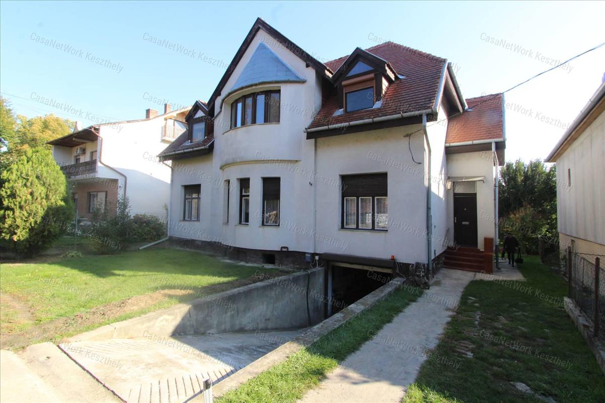 Kiváló elhelyezkedéssel, Keszthely belvárosában eladó egy nagypolgári jellegű, kétszintes, kétlakásos családi ház, 772 m² telken, garázzsal, hátsó gondozott kerttel.Az ingatlant kialakítása alkalmassá teszi két generáció részére, vagy apartmanná alakítható az alsó és felső szintekkel. Az épület hőszigetelt, gázfűtéssel rendelkezik. a felső szint azonnal lakható, az alsó szint erősen felújításra szorul. a kertben egy praktikus és bő hozamú ásott kút is található.