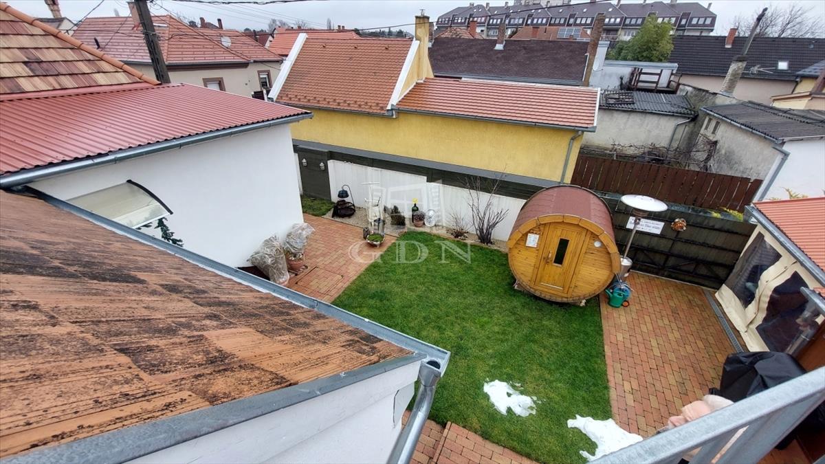 A gondosan kialakított udvaron autóbeálló, tároló, kerti lak és egy külön vendéglakás is helyet kapott (14 m2), mely saját fürdővel és teakonyhával rendelkezik.