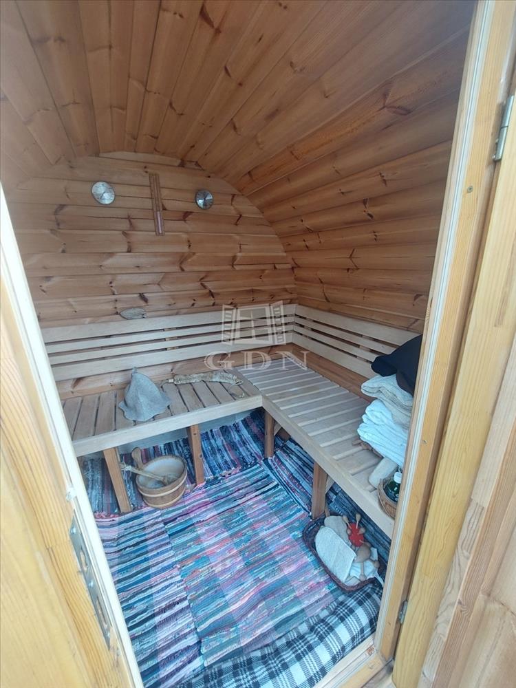 A kis kertben igazi exkluzív élményt kínál egy alig pár éves, teljesen felszerelt szauna, amely a vételár részét képezi, mint ahogyan a házban lévő klíma és a beépített, gépesített konyhabútor is! ! !