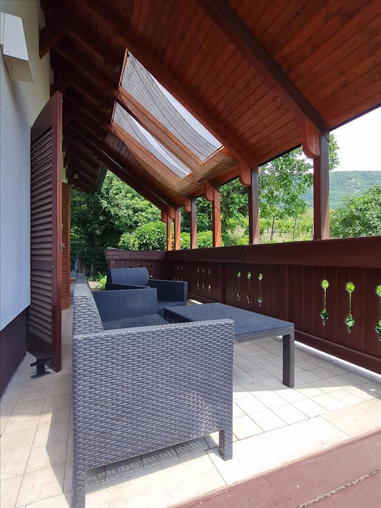 A több mint 2000 m²-es telken elhelyezkedő ingatlan tágas, jól kihasználható terekkel rendelkezik. Komfortérzetét részben padlófűtés, két hangulatos cserépkályha, valamint egy felső szinten kialakított szauna növeli. a házhoz nagy terasz és egy különleges hangulatú, téglaboltozatos borospince is tartozik. Az épületet német tulajdonos saját tervek alapján építtette.
