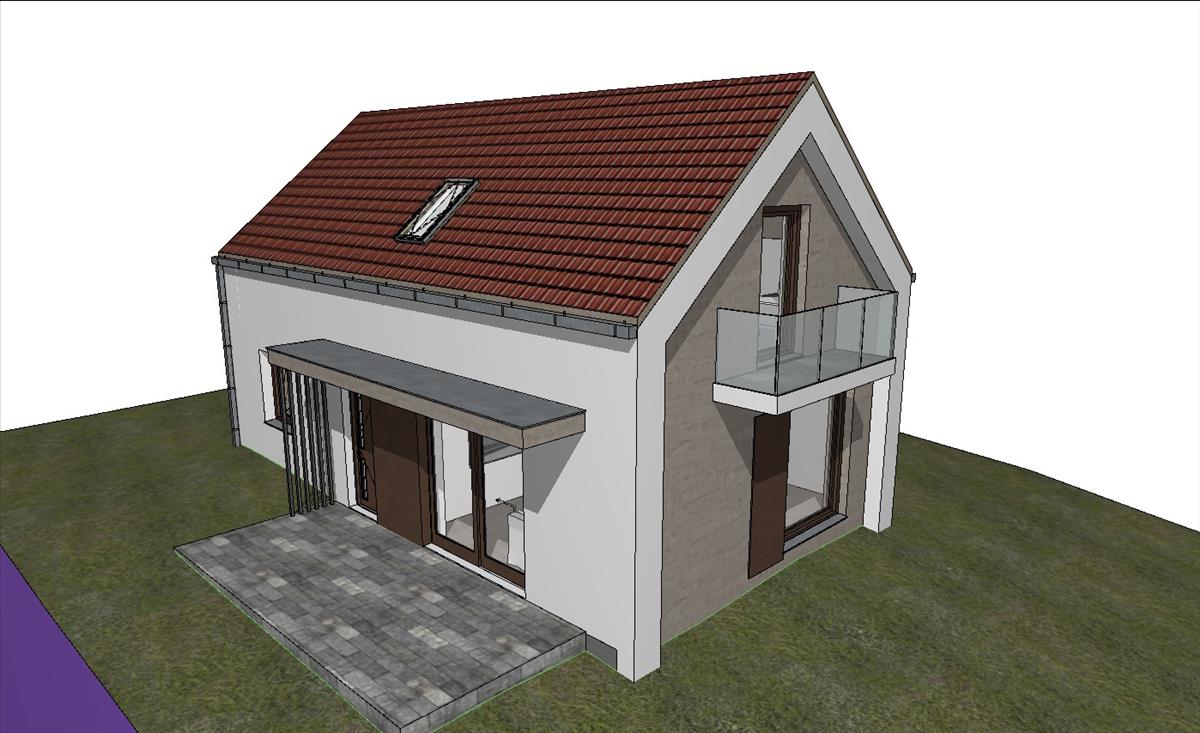 A modern, 80, 34 m2-es hasznos alapterületű, bruttó 134, 34 nm -es, tetőtér beépítéses családi ház külön utcáról megközelíthető, 417 m²-es telken valósul meg. Kulcsrakész átadása 2027. Tavaszra várható. a kiváló tájolású telekről körbe tekintve pompás panorámában gyönyörködhetünk a bakonyi dombokra és a Balatonra egyaránt.