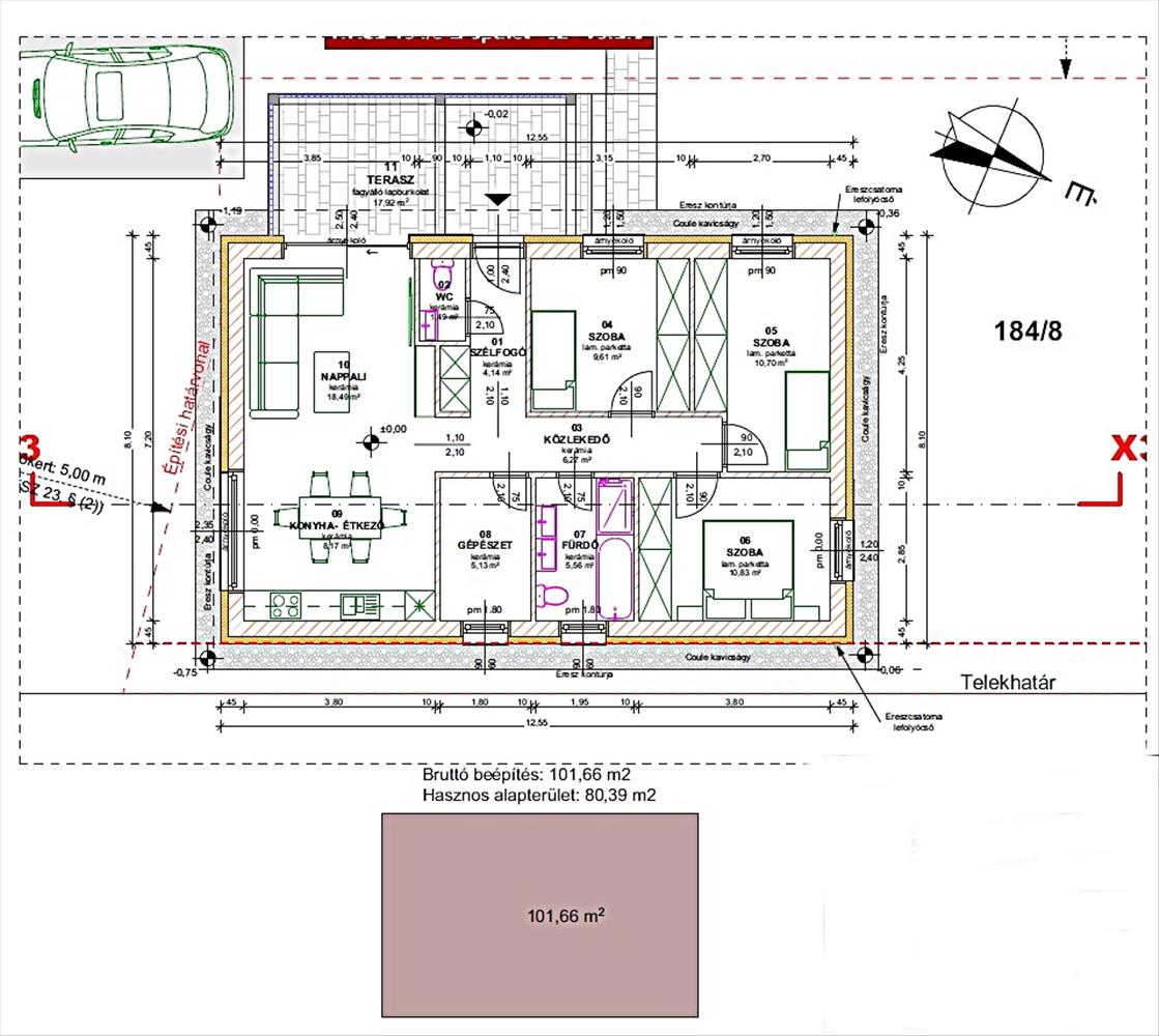 A modern, 80, 39 m2 hasznos alapterületű, bruttó 101, 66 m2-es, egyszintes családi ház külön utcáról megközelíthető, 417 m²-es telken valósul meg. a 3 szoba + nappalis családi ház kulcsrakész átadása 2027. Tavaszra várható. a kiváló tájolású telekről körbe tekintve pompás panorámában gyönyörködhetünk a bakonyi dombokra és a Balatonra egyaránt.