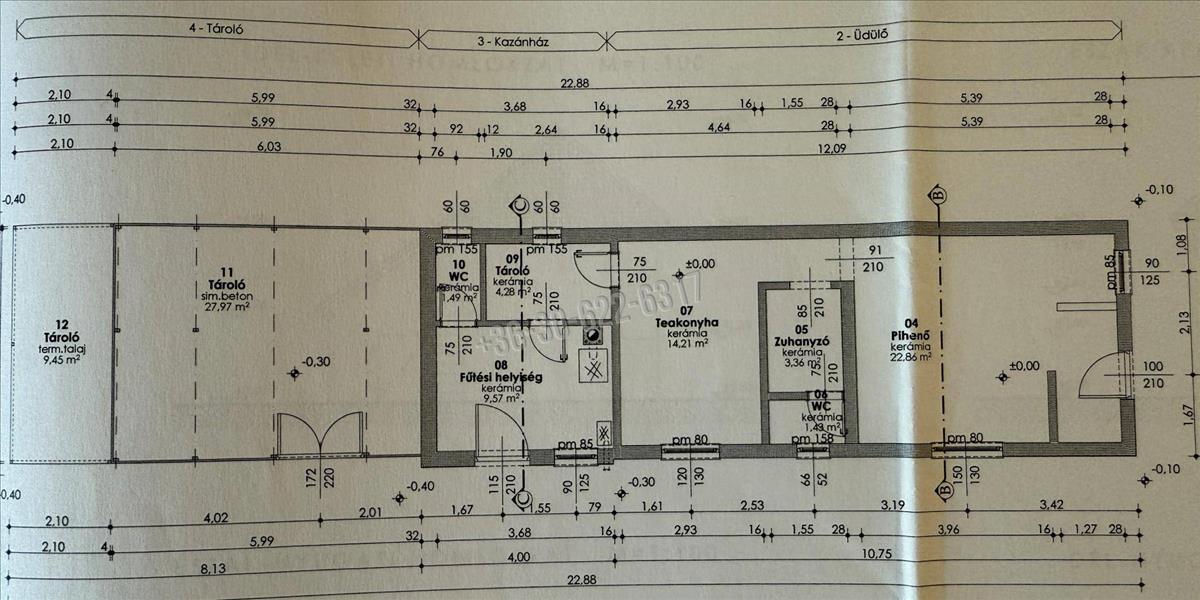 •Helyiségek: nappali, konyha, fürdő+WC, tároló, háztartási helyiség, külön WC