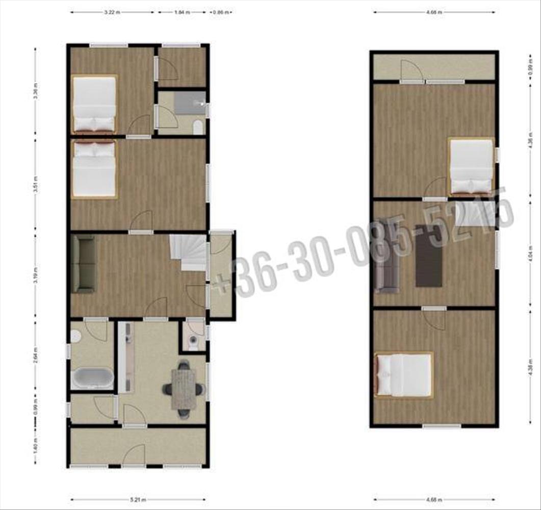 Magasföldszint: 60, 96 m² – 2 szoba, konyha, étkező, kamra, 2 fürdőszoba+ 1 különálló toalett,