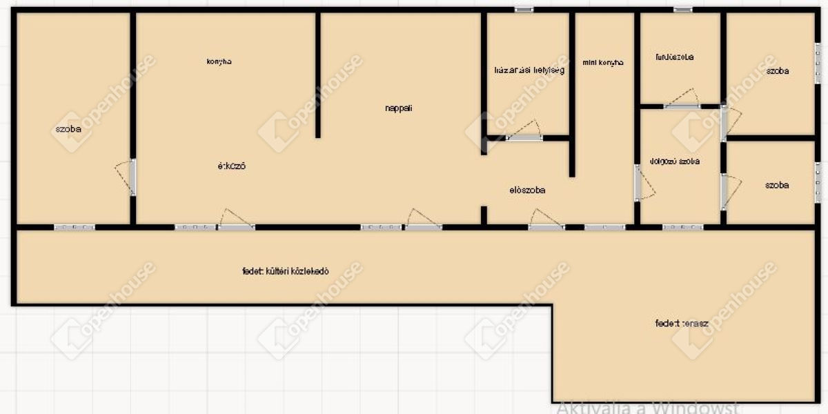 - nyílászárók: homlokzaton fa szerkezetű Sofatherm típusú hőszigetelt üvegezéssel, beltérben magas fényű fa