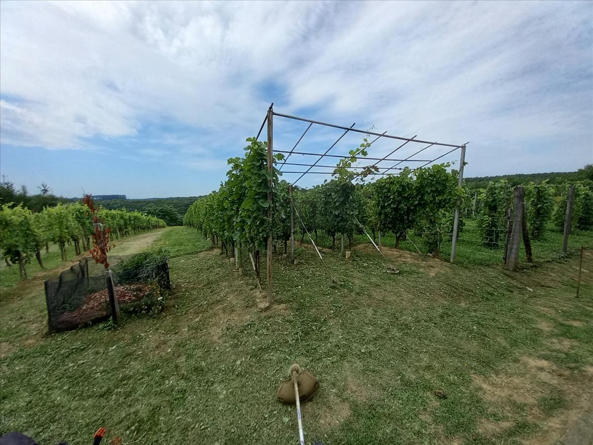 A rendezett pincétől láthatóak a Varasdi hegyek.