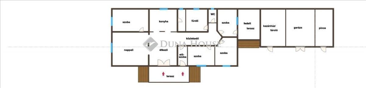- 3 szoba+ nappali, étkező, konyha, kamra, fürdőszoba, wc, előszoba, közlekedő
