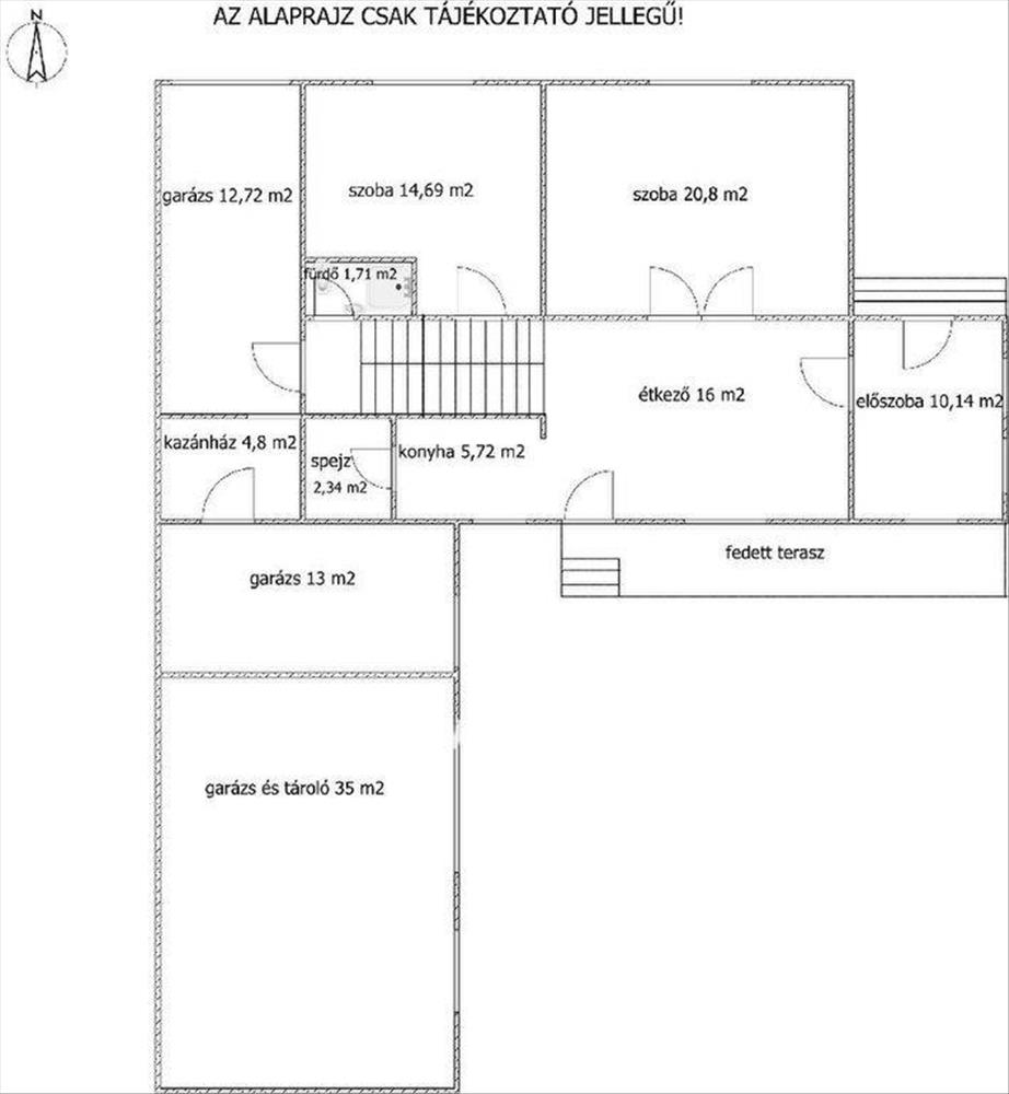 Földszint: 2 szoba, konyha étkezővel, spejz, zuhanyzós fürdőszoba WC-vel, előszoba