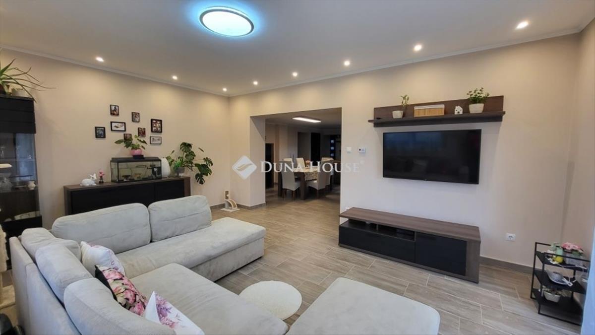 Kiskunfélegyházán, a belvároshoz közel, mégis csendes, zöldövezeti utcában kínálom eladásra ezt a 110 m²-es, igényesen felújított családi házat, amely egy 726 m²-es, rendezett telken helyezkedik el. Az elhelyezkedés ideális azok számára, akik nyugodt környezetben szeretnének élni, ugyanakkor fontos számukra a központ könnyű elérhetősége. Az ingatlan 2018 és 2021 között teljes körűen megújult, amelynek során a villany-, víz- és gázvezetékek cseréje is megtörtént. a vegyes falazatú ház vályog része 10 cm kőzetgyapot, a tégla része 10 cm grafitos hőszigetelést kapott, a födém 10-20 cm vastagságú szigeteléssel ellátott. a tető cseréje szintén megtörtént, mediterrán stílusú cserépfedéssel, a homlokzat nemesvakolat borítást kapott, a nyílászárók korszerűek és redőnnyel felszereltek. a szigetelésnek és a modern gépészetnek köszönhetően az ingatlan családi házhoz képest kifejezetten alacsony rezsiköltséggel fenntartható. a kényelmet minden helyiségben kiépített padlófűtés biztosítja, amelyhez a meleg vizet gázkazán szolgáltatja. a nappaliban hűtő-fűtő klíma is rendelkezésre áll, amely tovább növeli a komfortérzetet. a belső terek modern és otthonos hangulatúak: a nappaliban álmennyezet és spotvilágítás került kialakításra, a konyhában pedig praktikus konyhasziget található. a konyhából közvetlen kijárat nyílik a 21 m²-es fedett teraszra és a hátsó udvarra, amely kiváló helyszíne lehet családi és baráti összejöveteleknek, szabadtéri sütögetésnek vagy pihenésnek. a fürdőszoba és a wc külön helyiségben kapott helyet, a fürdőszobában fürdőkád és törölközőszárító is megtalálható. a lakótér része egy 2, 5 m²-es kamra is, amely praktikus tárolási lehetőséget biztosít. a telek rendezett, térkövezett udvari beállóval és utcafronti beállóval rendelkezik, az elektromos kapu kényelmes és biztonságos bejutást tesz lehetővé. a házhoz melléképület is tartozik, amely további tárolásra vagy egyéb célra is hasznosítható. Az ingatlan csok, CSOK Plusz és Otthon Start program igénybevételére is alkalmas, így támogatással vásárlók számára is kiváló lehetőség. Amennyiben egy felújított, alacsony fenntartási költségű, azonnal költözhető otthont keres Kiskunfélegyházán, ez az ingatlan ideális választás lehet.Referencia szám: hz057926 FIX 3% lakáshitelre megvehető