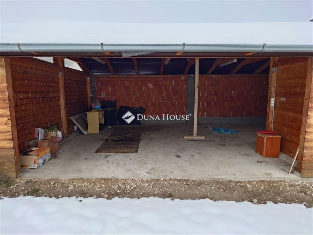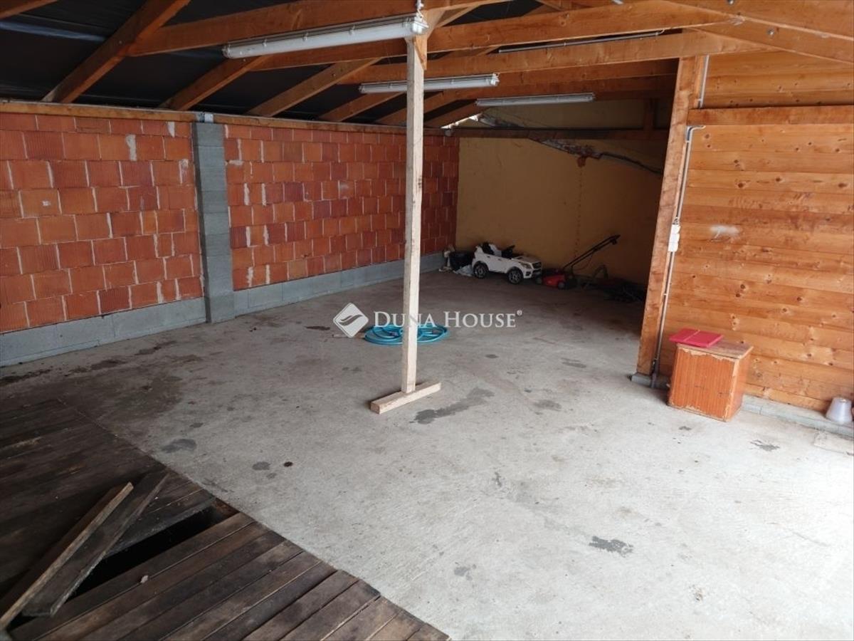 A telken található még egy 15 m2-es garázs és a ház hátsó részéhez épített 25 m2-es fedett szerelőaknás szín.