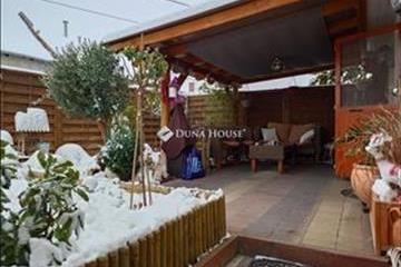 A házhoz tartozó kert kb. 40 m2, szépen parkosított, egy része térkővel burkolt. Ideális helyszín grillezéshez, összejövetelekhez.