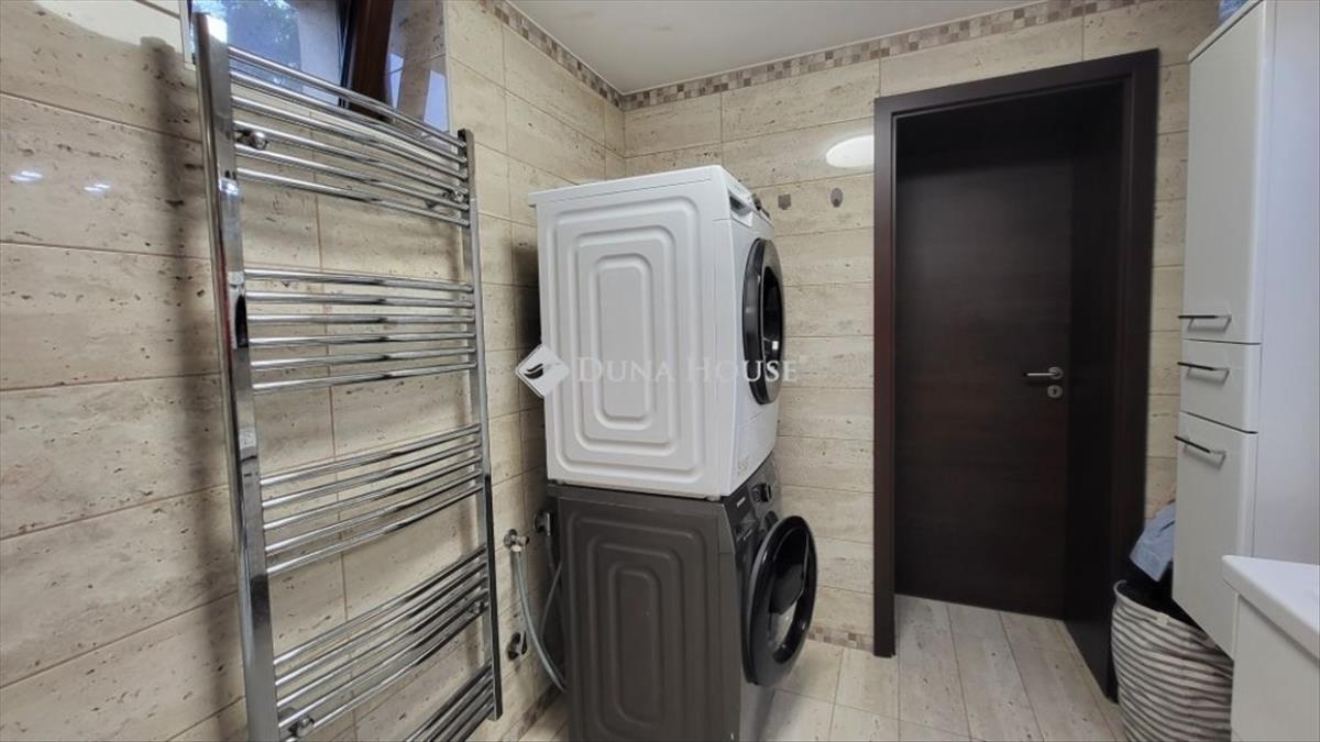 A fürdőszoba és a wc külön helyiségben kapott helyet, a fürdőszobában fürdőkád és törölközőszárító is megtalálható. a lakótér része egy 2, 5 m²-es kamra is, amely praktikus tárolási lehetőséget biztosít.