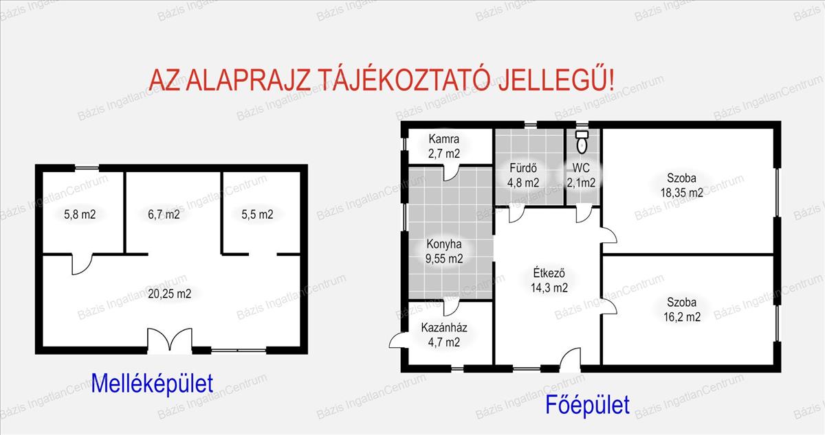 Bács-Kiskun megye Kiskunhalas Keceli úton közvetlen az aszfaltozott út mellett, 70 m2 alapterületű, jó állapotú családi ház eladó. Ehhez tartozik egy 38 m2 -es melléképület, melyben akár még egy külön lakrész is kialakítható, a villany és a víz ide is be lett vezetve, jelenleg egy fatüzelésű kályhával fűthető, így akár két generáció együttélése is megoldható.  a tégla falazatú főépület 2000-ben épült beton alapra. Két hálószoba, egy konyha, étkező/nappali, fürdőszoba, wc, kamra, valamint egy kazánház lett kialakítva benne. a fűtést jelenleg vegyes tüzelésű kazán biztosítja radiátoros hőleadással, ezen kívül egy inverteres klíma is rendelkezésre áll. a szobákat padlószőnyeggel burkolták, míg a többi helyiség járólapos. Az ingatlan műanyag nyílászárókkal rendelkezik, az utcafronti ablakokra redőnyöket szereltek. a főépület bővítésének lehetősége is adott, hiszen a tetőtér ~55 m2-ének beépítésével az ingatlan hasznos alapterülete növelhető. Az udvaron található még egy garázs, illetve egy hangulatos filagória. Vállalkozás számára is kitűnő helyszínt biztosíthat az ingatlan, mely egy 5566 m2-es telken helyezkedik el: amelyből 1428 m2 kivett lakóház, udvar fizikailag is elkerítve, 1456 m2 kert, illetve 2682 m2 szántó besorolású. a kert és szántó miatt az ingatlan kifüggesztési eljárás keretein belül vásárolható meg. a telek villany közművel rendelkezik, a vízellátás fúrt kútról megoldott, a szennyvíz elvezetése derítőbe történik. a ház a hozzá tartozó terület és a jó állapotú melléképületek miatt kiválóan alkalmas lehet állattartásra, gazdálkodásra is. Az ingatlan közvetlen közelében található egy buszmegálló, ahol nemcsak a helyi, de a helyközi buszjáratok is megállnak. Bővebb információkért várom hívását. FIX 3% lakáshitelre megvehető