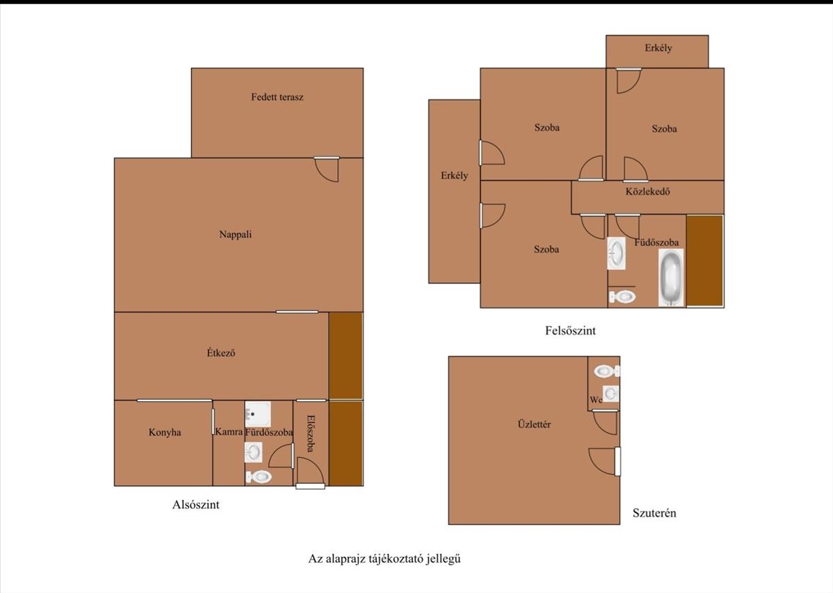 -Felsőszint: (60 nm ) 3 hálószoba, fürdőszoba, közlekedő, 2 erkély