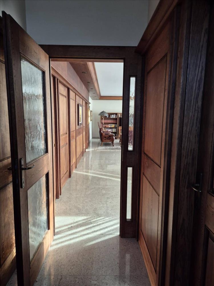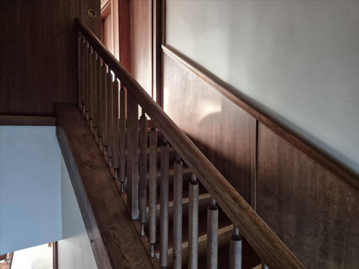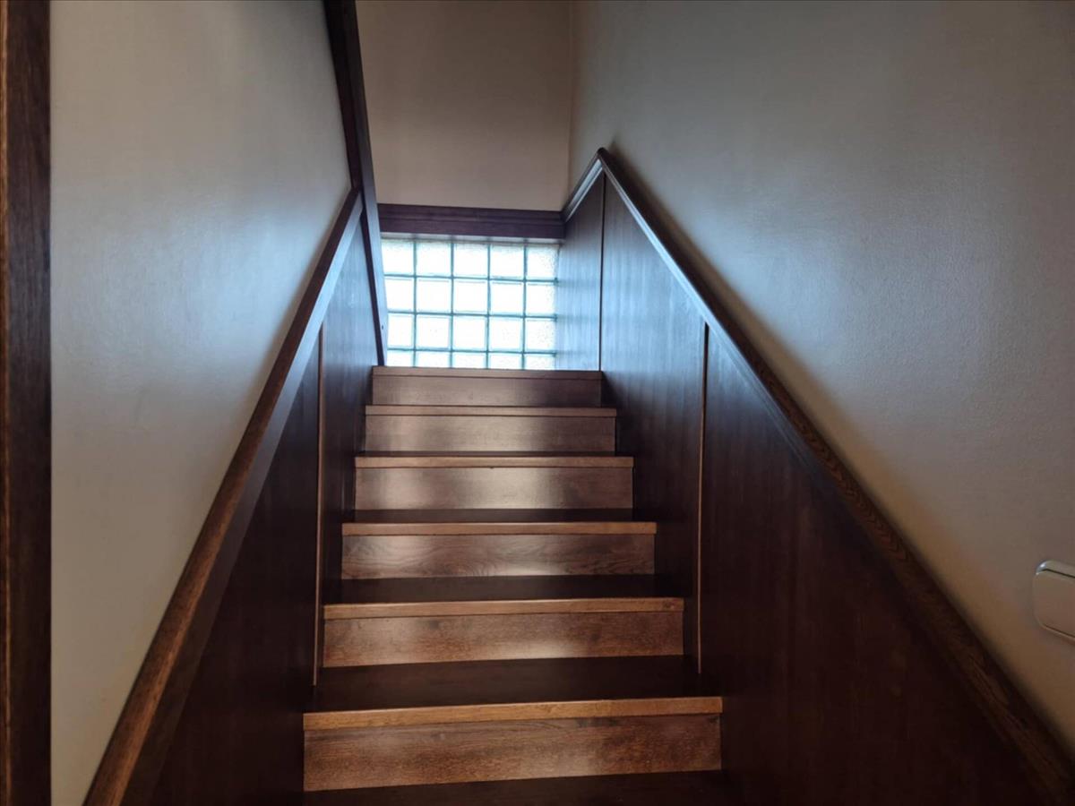Szinteket egyedi gyártású lépcső köti össze egymással. Beltéri tölgyfa ajtók, beépített gardróbszekrények teszi még impozánsabbá a belső teret.
