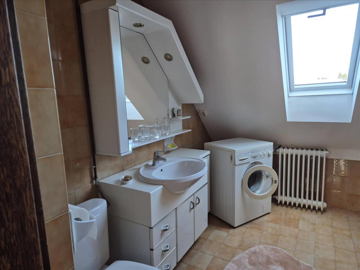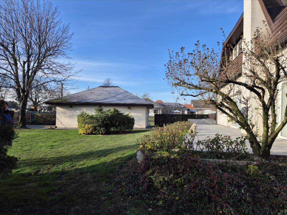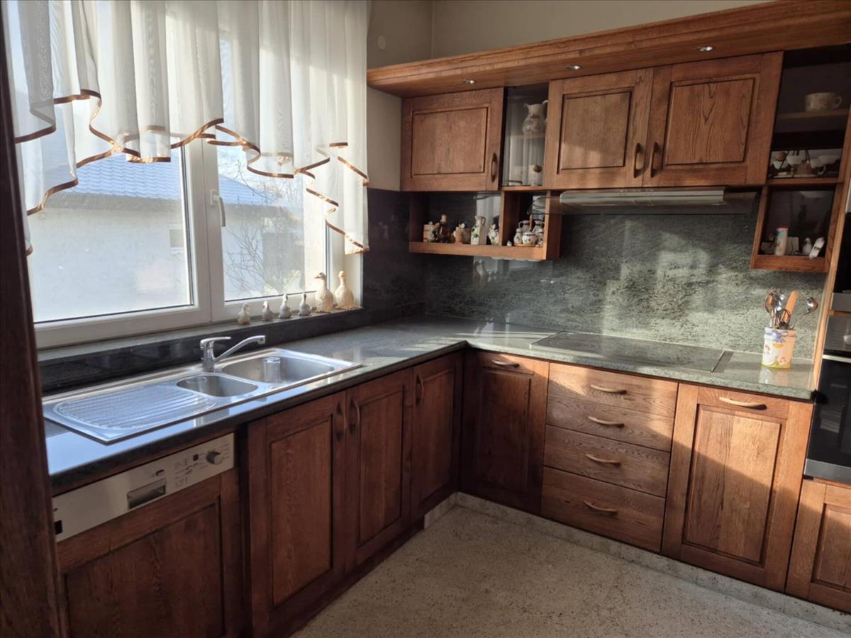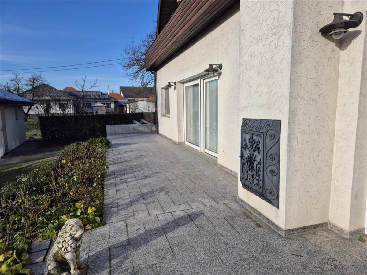 Szép, impozáns belső tér, nagy és világos terek, felszerelt konyha. Gondozott, nagy kert. Két állásos garázs. Riasztó, elektromos kapu.