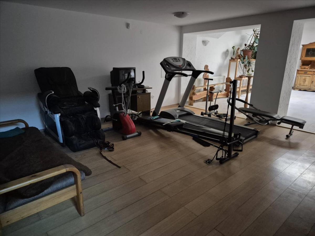 A szuterén szintjén, berendezett fitnesz terem, szauna, zuhanyzó, külön wc, műhely, mosókonyha, téli kert található.