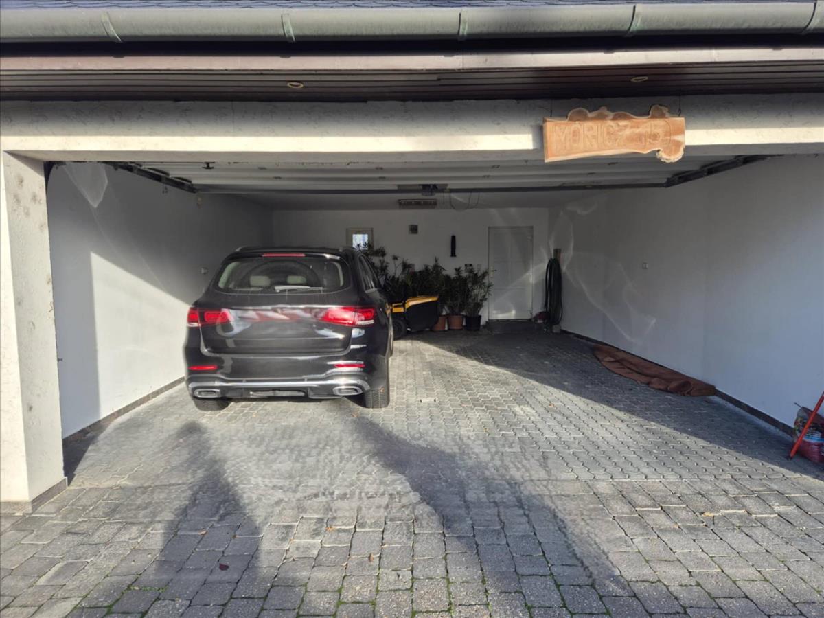 A parkolás két állásos, Hörmann elektromos kapuval, riasztóval ellátott garázsban megoldott.